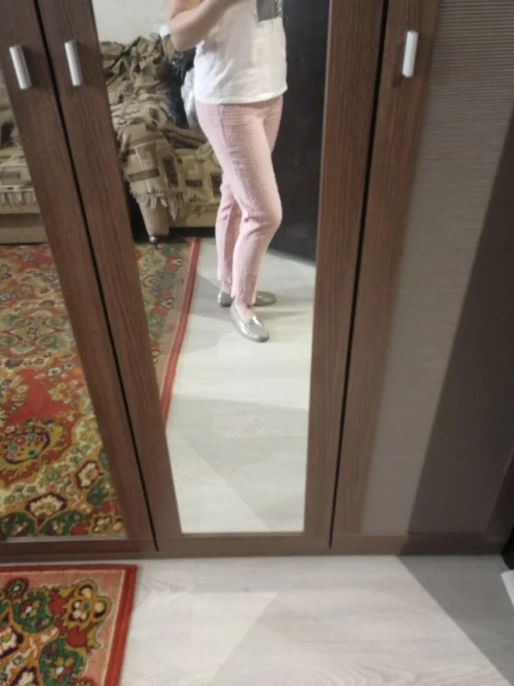 Excellent trousers for the summer. The store advised the correct size for ot 70/ob 92, a couple more cm will fit. On height 165 cm. The length is full-fledged-closes the ankle, i wrap it up. Neat sewing, fast delivery.
