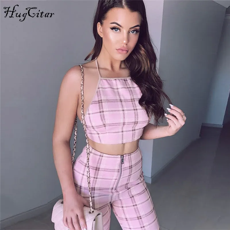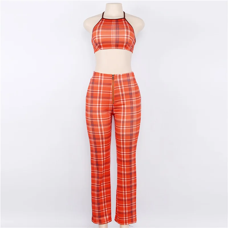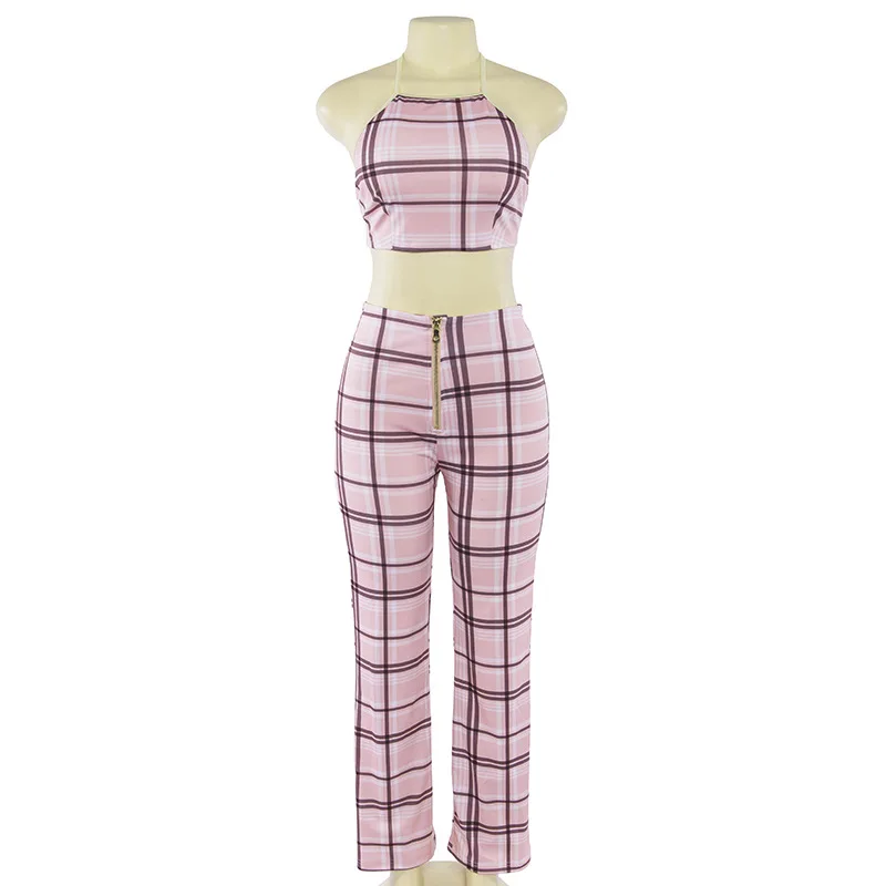FREE SHIPPING Women plaid blackless sexy camis pants 2 pieces set suits JKP1277