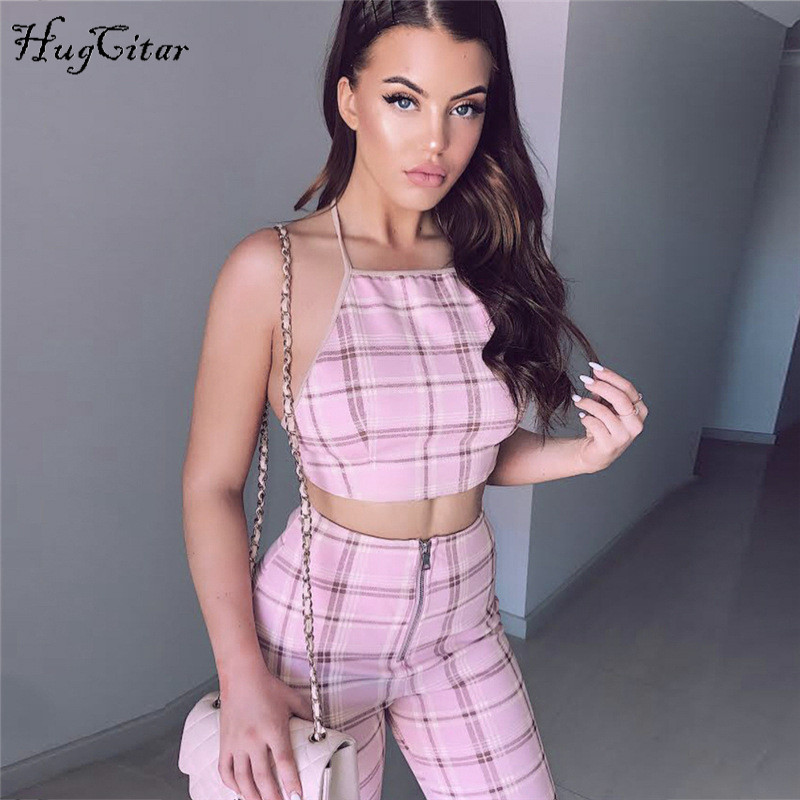 Home / Two Piece / FREE SHIPPING Women plaid blackless sexy camis pants 2 pieces set suits JKP1277
