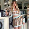 FREE SHIPPING Women Plaid Sexy Women Suit Two Piece Set JKP3695