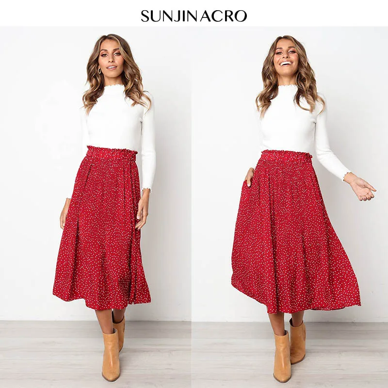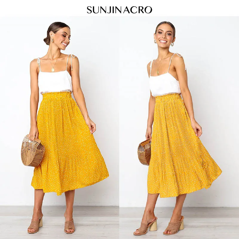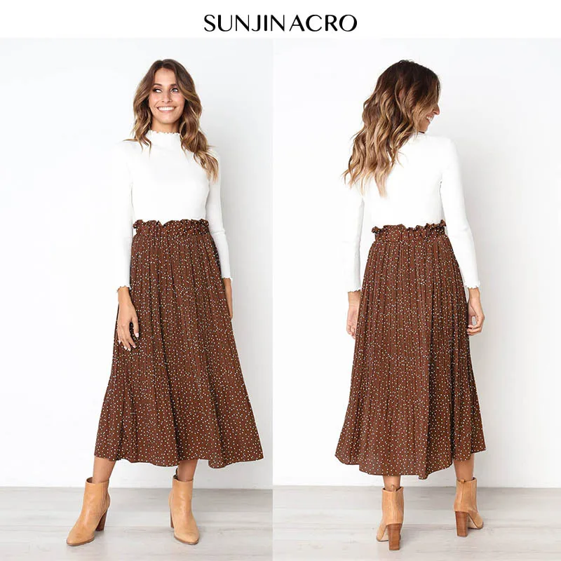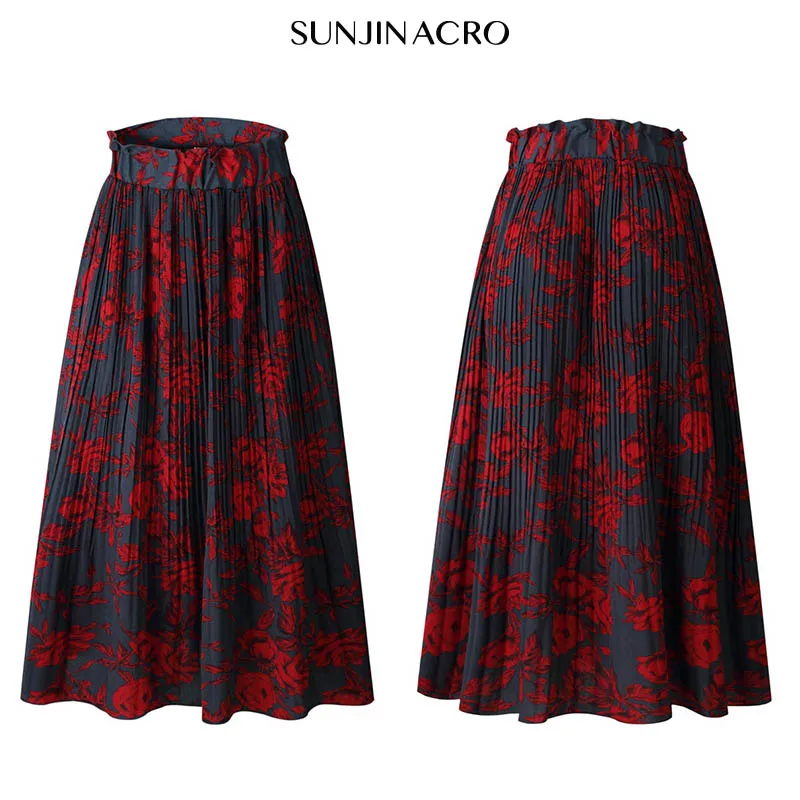FREE SHIPPING Women Pleated Print Midi Skirts JKP1695
