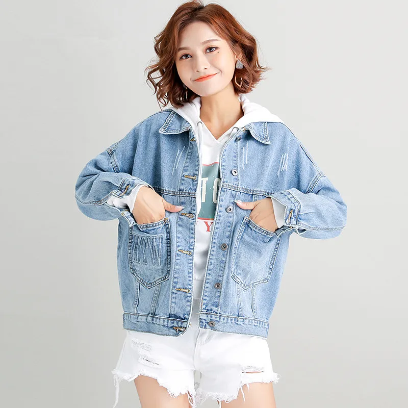 FREE SHIPPING Women Plus Size 6XL Long Basical Jeans Jacket JKP3635