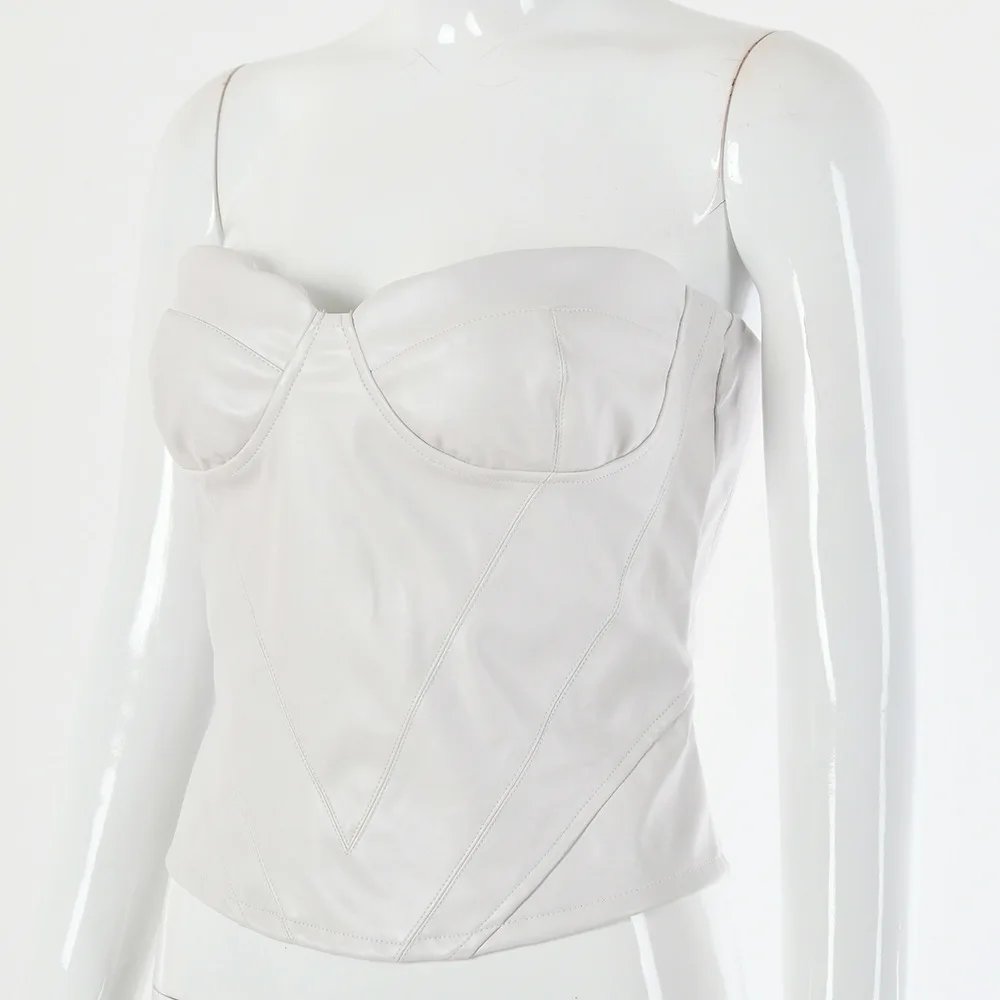 FREE SHIPPING Women PU Off Shoulder Camisole Tops JKP3107