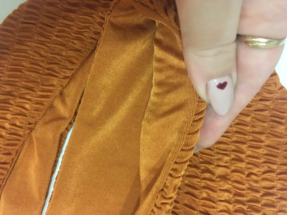 Very nice, delicate material, inner lining. The top part is smaller and the bottom part bigger i'll have to adjust but no problem. Very good! Delivery sooner than expected.