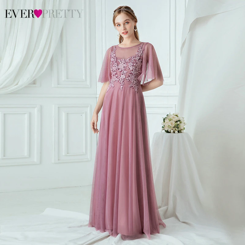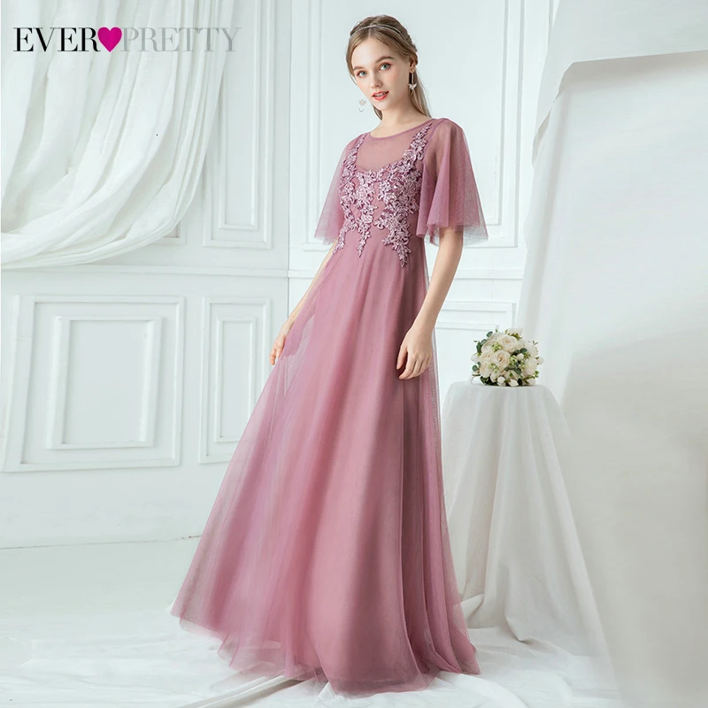 FREE SHIPPING Women Ruffles Sleeve A-Line O-Neck Tulle Long Party Gowns JKP3633