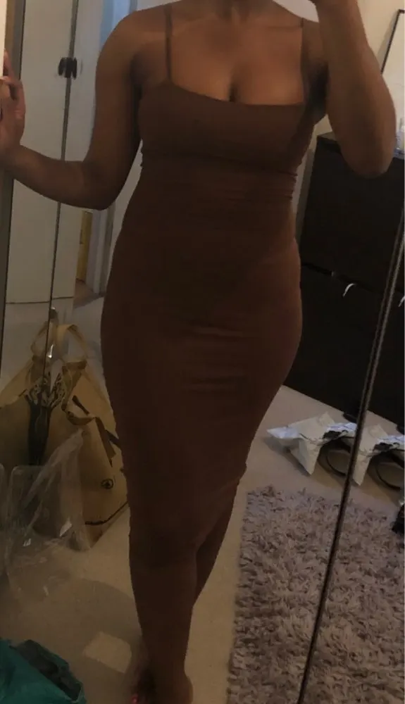 Totally love this dress. Im a uk 10/12 4ft 11 in height really good thick material. Nice stretch to it too.. like my dress on insta @meeexoxm