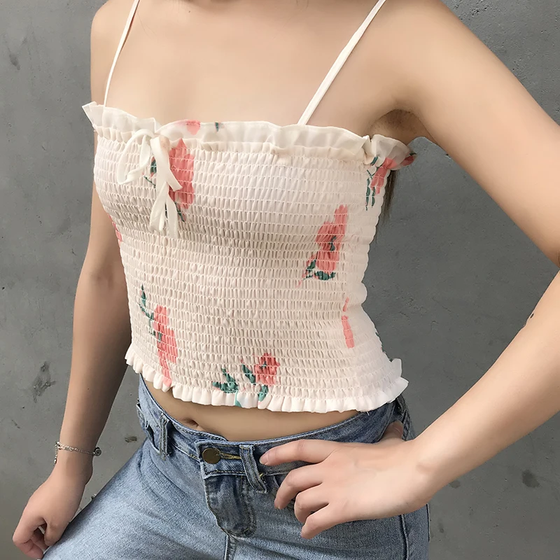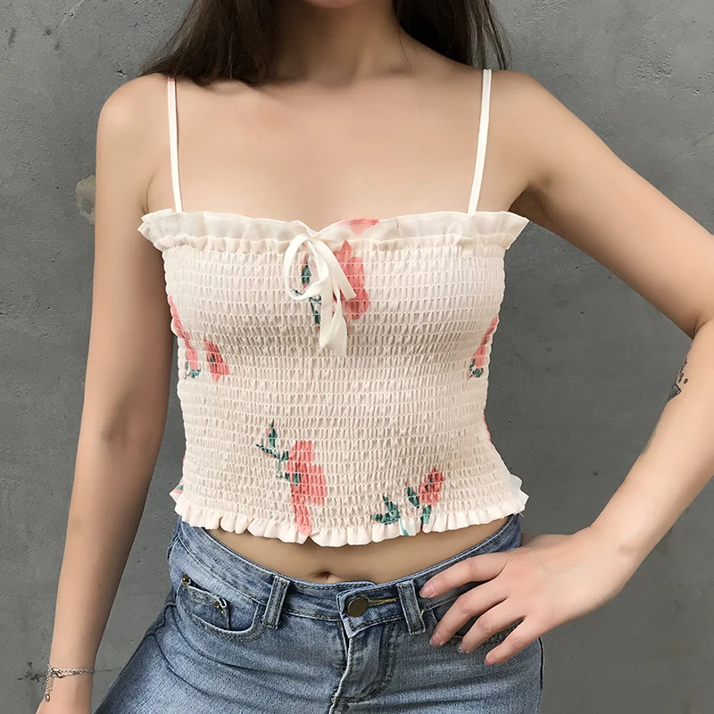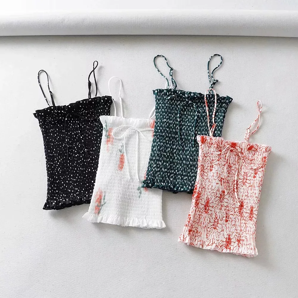 FREE SHIPPING Women Sexy Camisole female summer fashion tube Top print Wood ear elastic lace club Tops vintage for Womens tank tops JKP2919