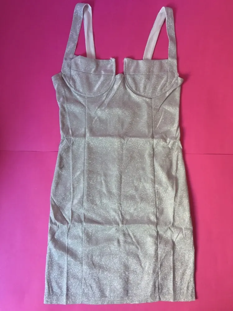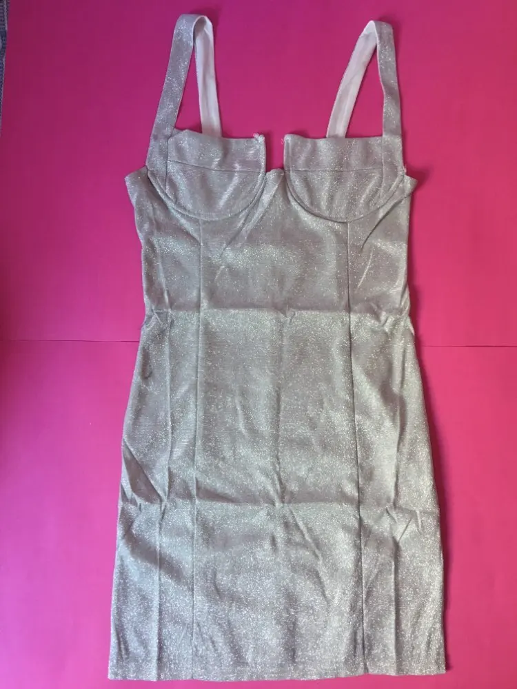 Perfect Dress! Fit perfectly,I took size M, and I had to take s, girls take your measurements! I added another Swarovski on the dress, even though it was already shining without