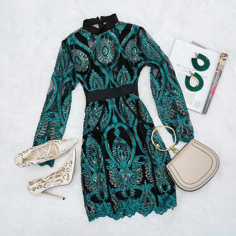 The photo does not transmit the real green color of the dress! The dress village is excellent! Was already set to suture, judging by the reviews! Height 160 cm, weight 54, og 88 (but dress for push up dressed), from 78 cm, about 95 cm. Looks expensive. There are protruding threads, but this is not critical. It came in a month from the moment of order. very satisfied with the dress, thank you!
