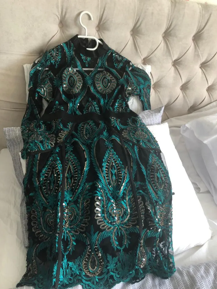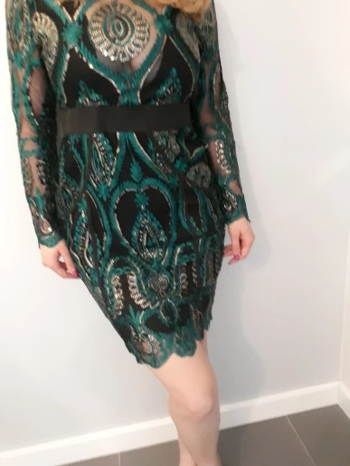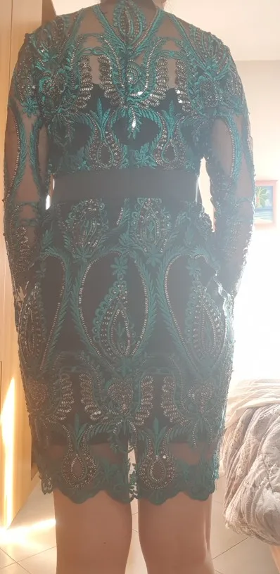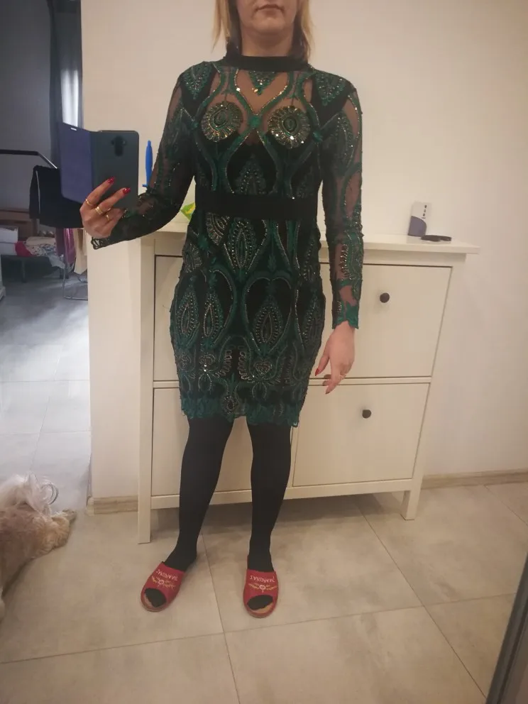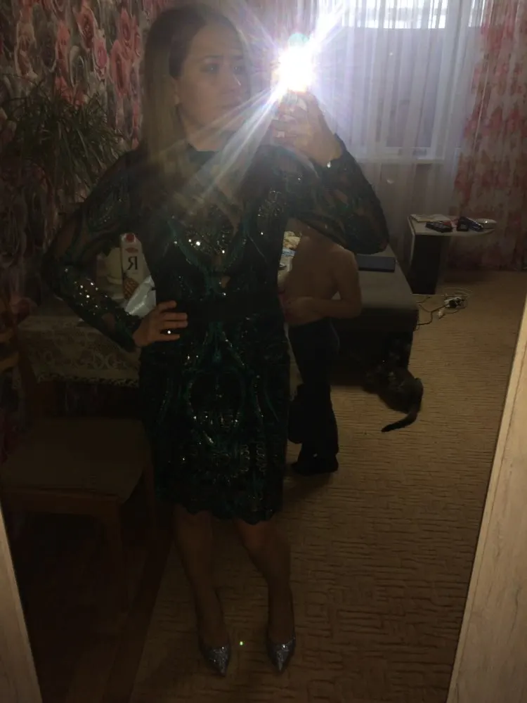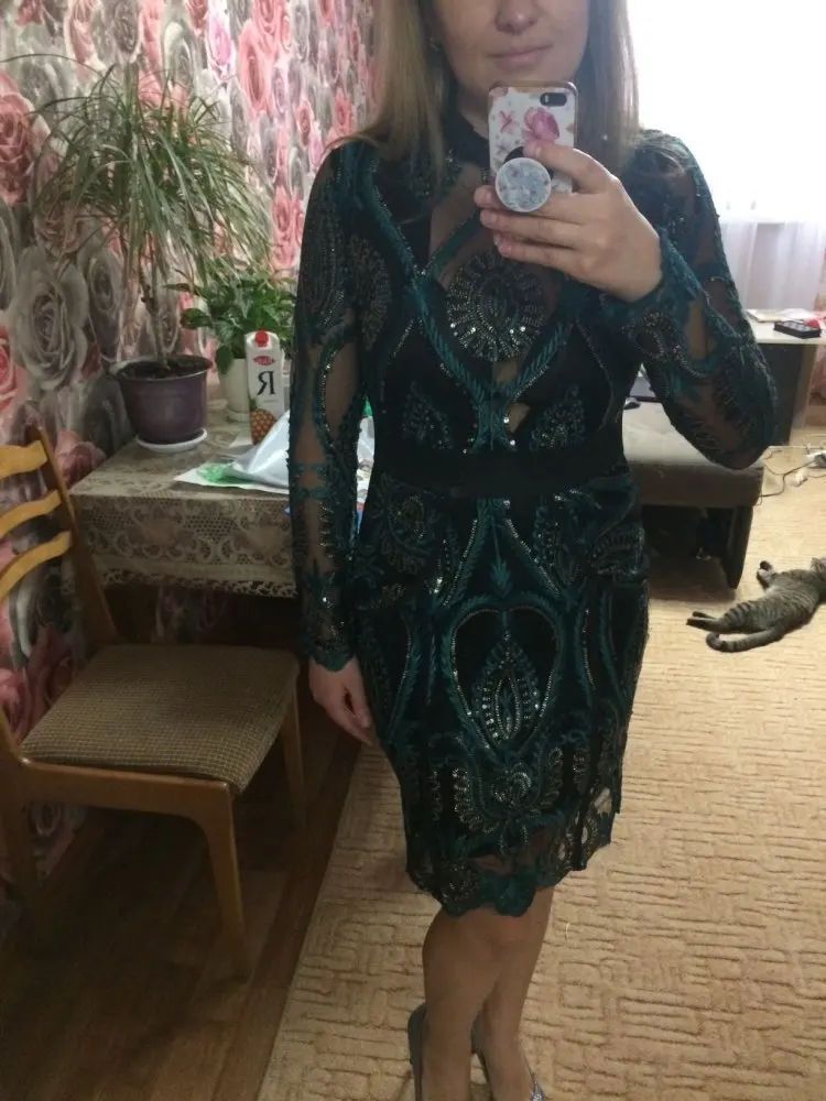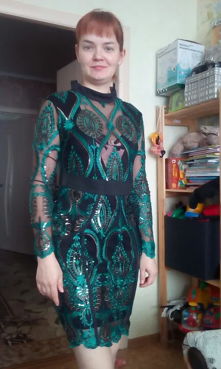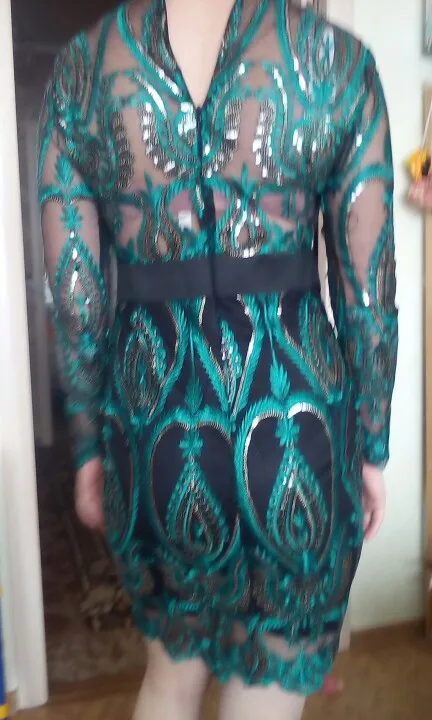 A beautiful dress, festive, will go for the new year, corporate parties. On the parameters 83/70/98 came the size s. Color emerald as in 1 photo, where one dress. The store umnichka advised the size, and was correct. Everything came up. Of the minuses: a lot of threads protruding, the waist is slightly free, under the bottom you need to wear a t-shirt or a tomik, because. You can see the bra, behind the dress the edge is uneven, but all this is fixable, so i put 5 stars. Everyone should have this dress on the way out