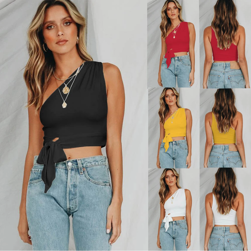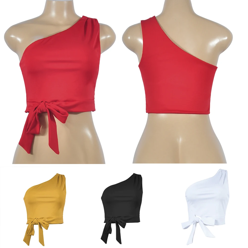 FREE SHIPPING Women Sexy One Shoulder Casual Crop Top JKP3096