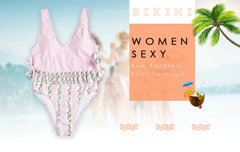 FREE SHIPPING Women Sexy Swimwear One Piece Swimsuit Bow Backless Print Wire Free Padded Striped Women Bathing Suit Beach Suits JKP2405