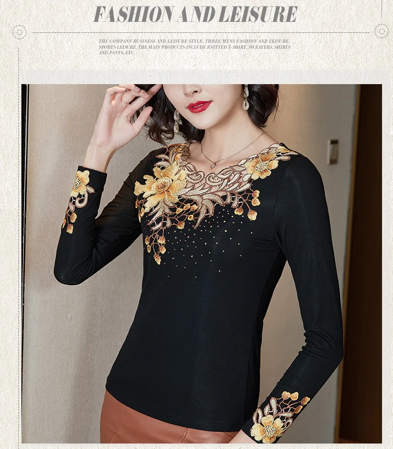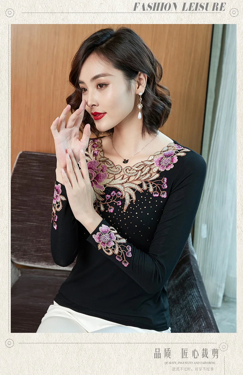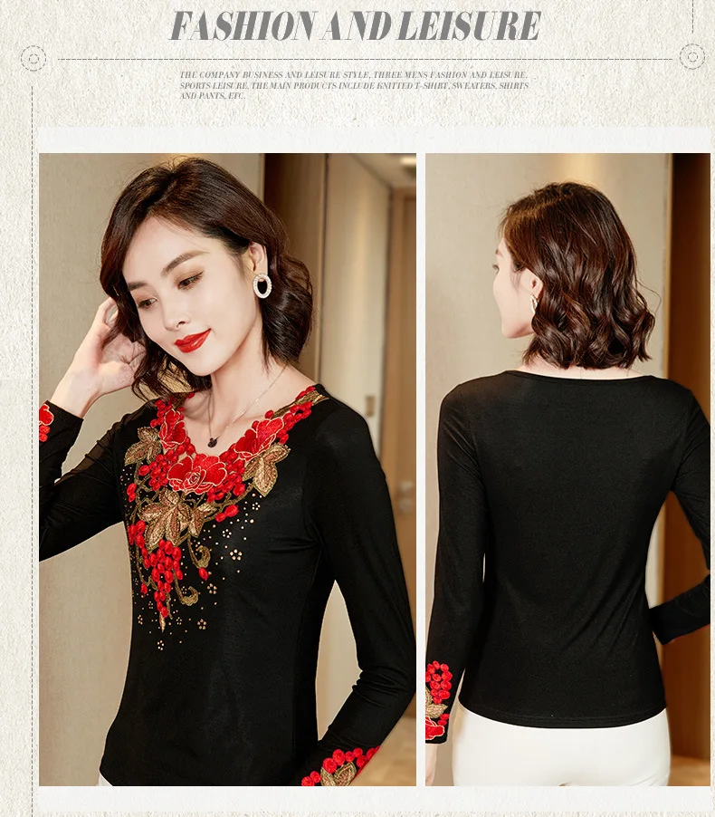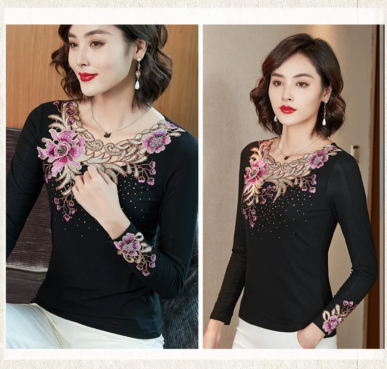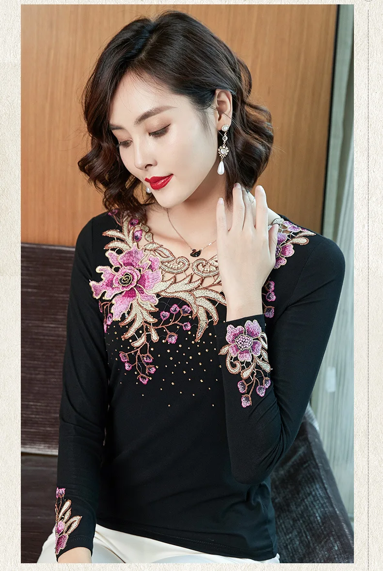 FREE SHIPPING Women Shirt Blouse With Neck Embroidered Long Sleeves JKP5899