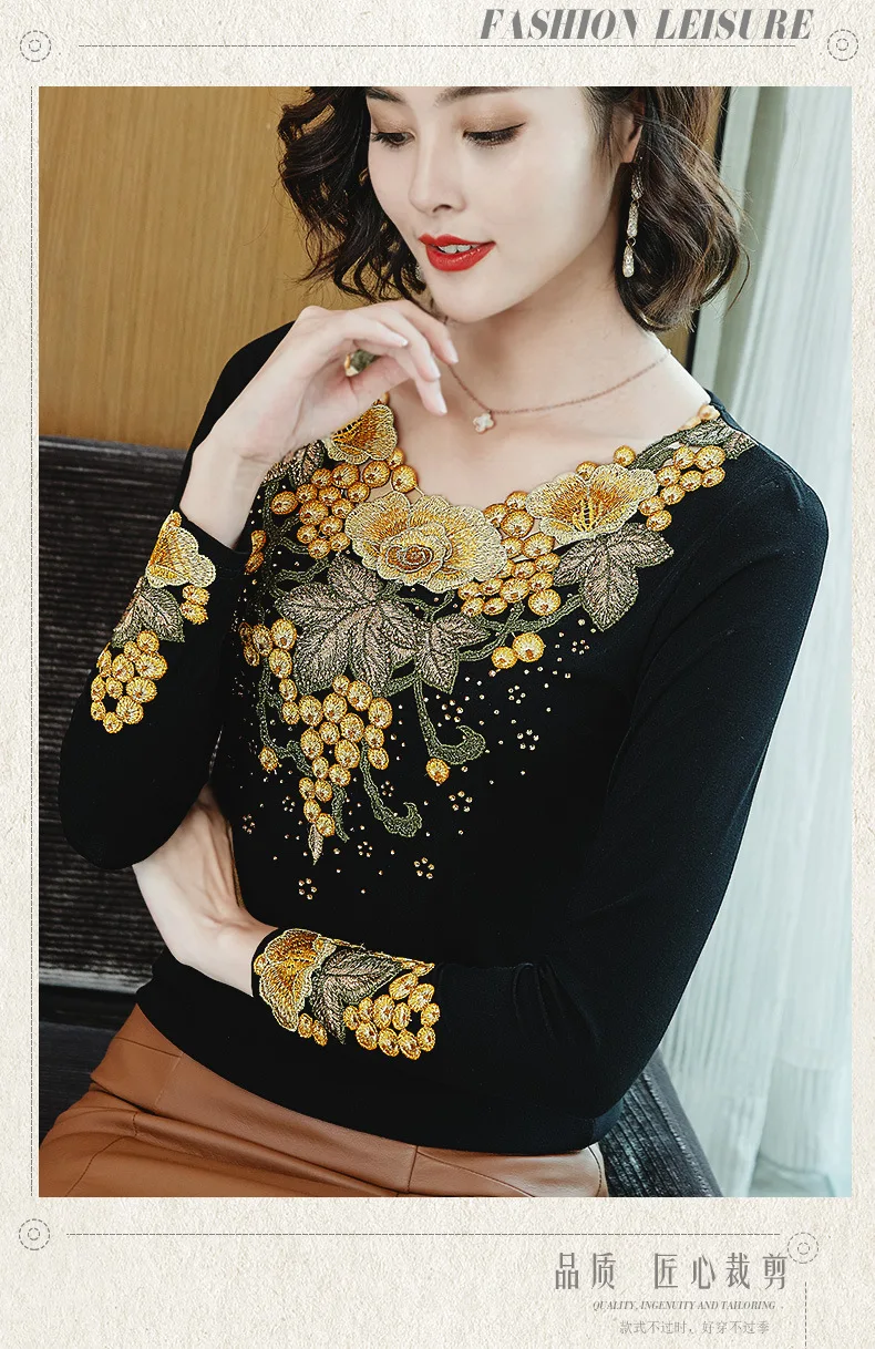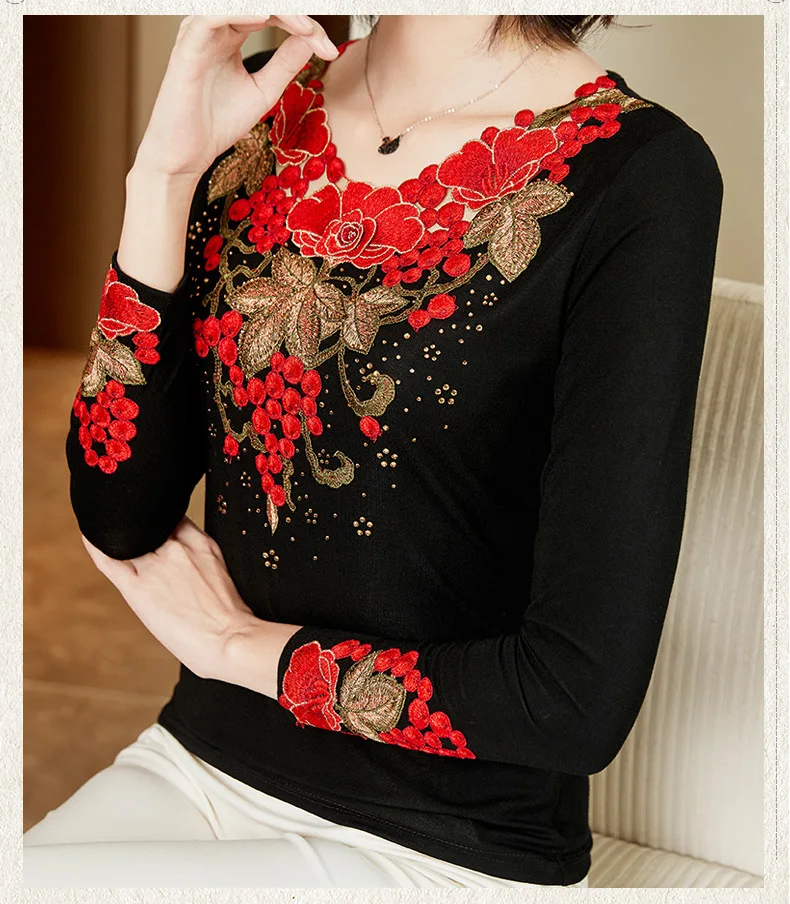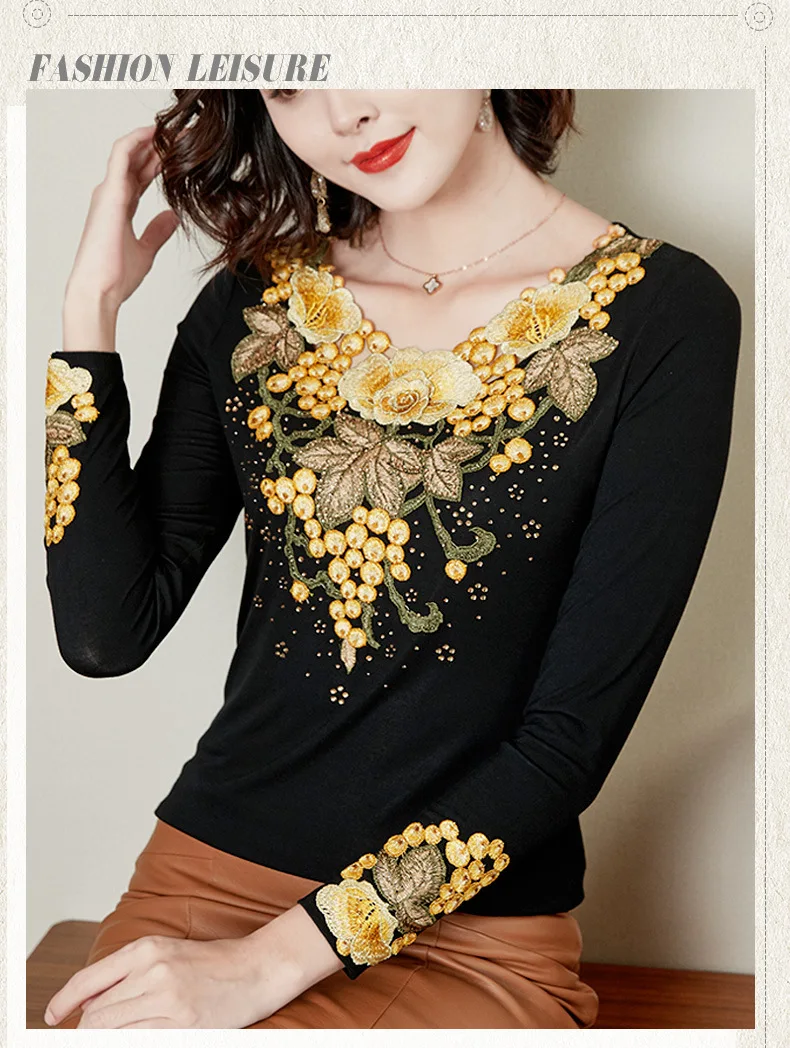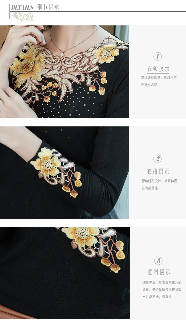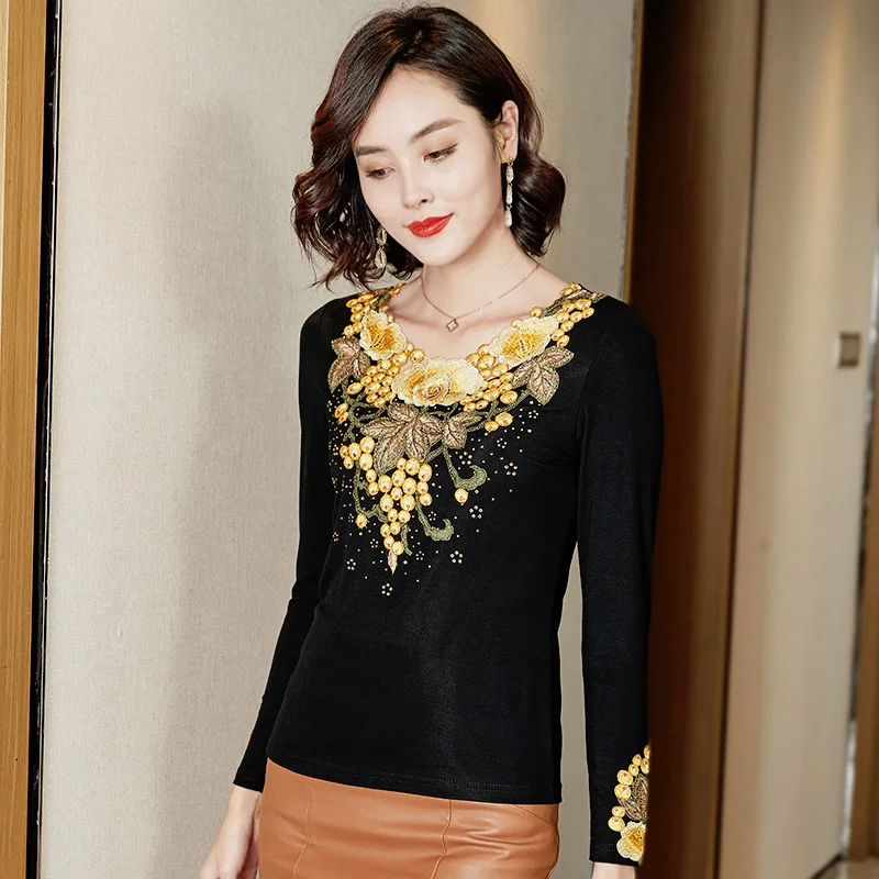 FREE SHIPPING Women Shirt Blouse With Neck Embroidered Long Sleeves JKP5899