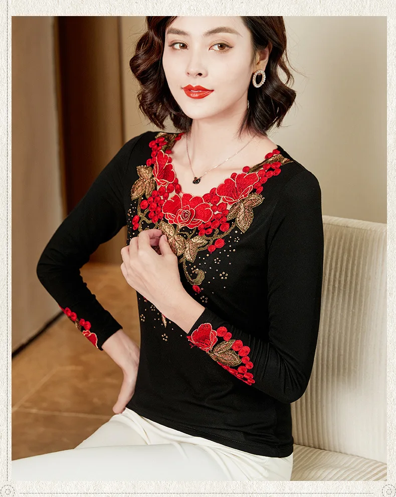 Home / Fashion / Shirt / FREE SHIPPING Women Shirt Blouse With Neck Embroidered Long Sleeves JKP5899