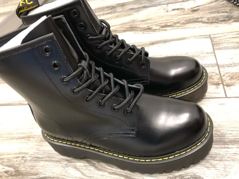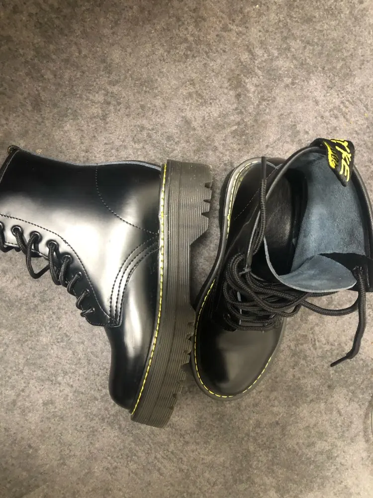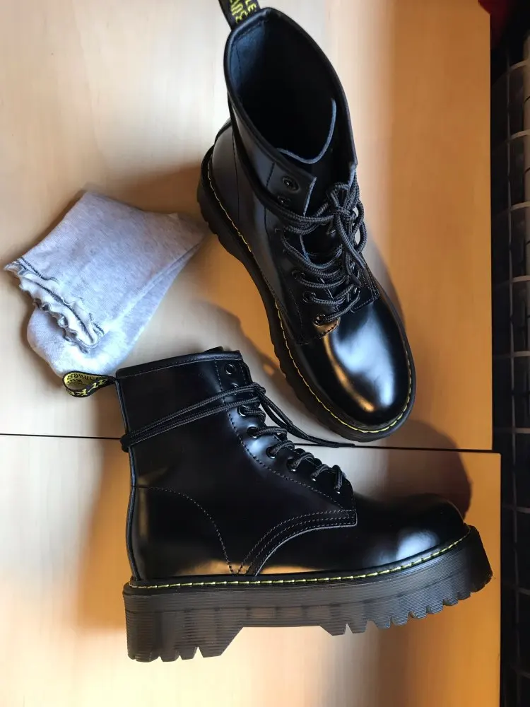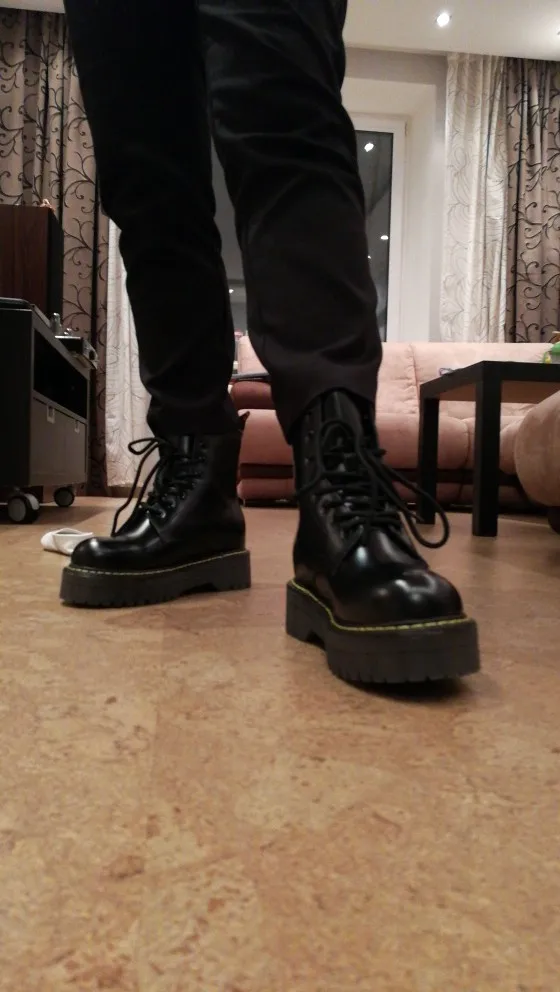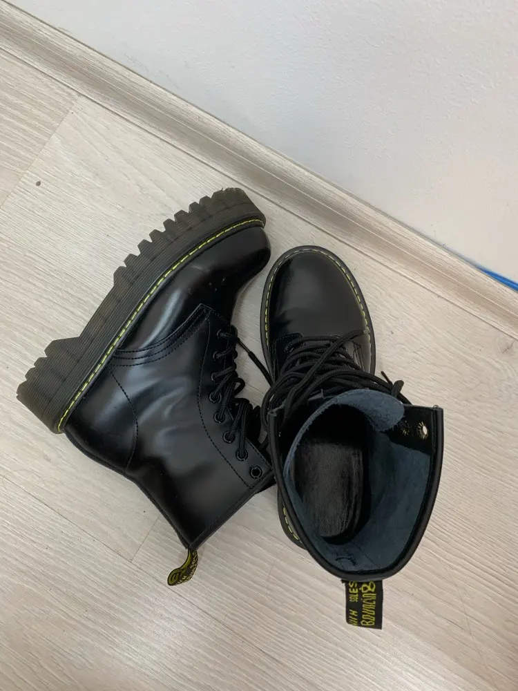 Boots in the style of "Martins 90's" cool! At the foot of 24 cm (RUS. 37) came up perfectly! I took a model with plush inside, I do not really like cold skin inside. Now for socks in Moscow are ideal for jeans, culottes, even light dresses in contrast,-a universal thing! Packing is super reliable, nothing wrinkled, socks as a gift)