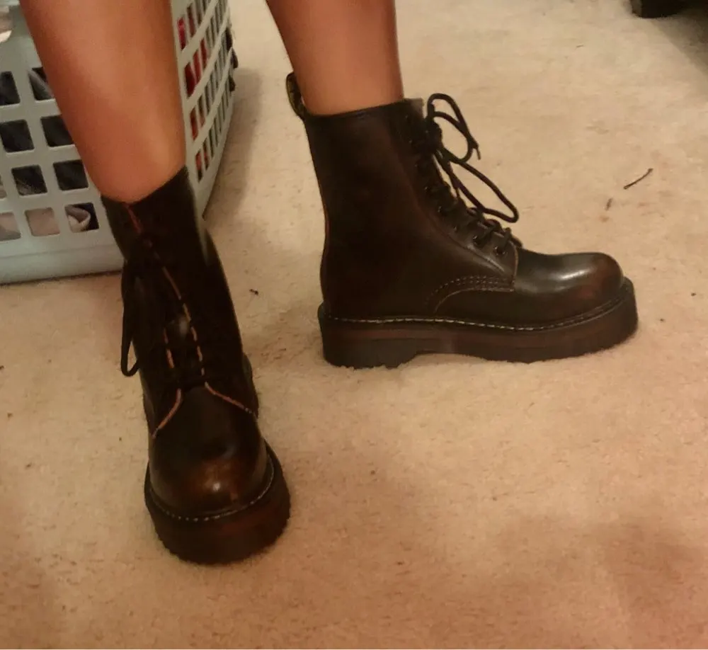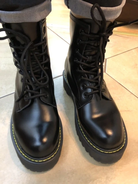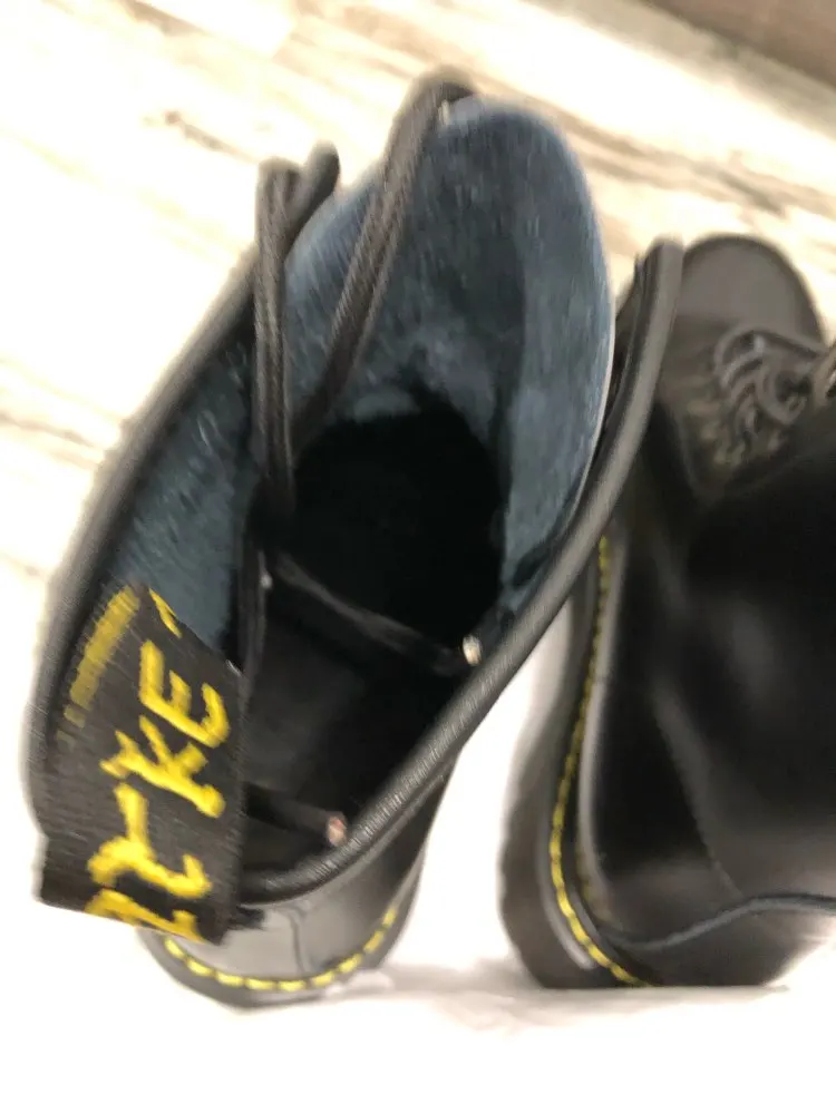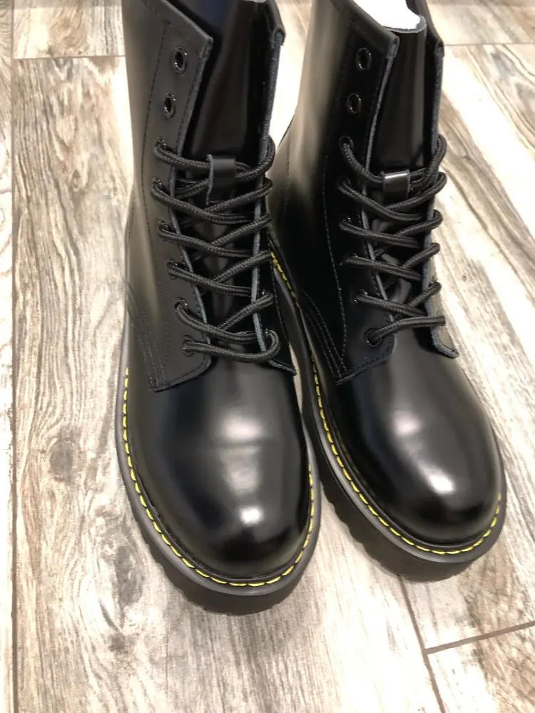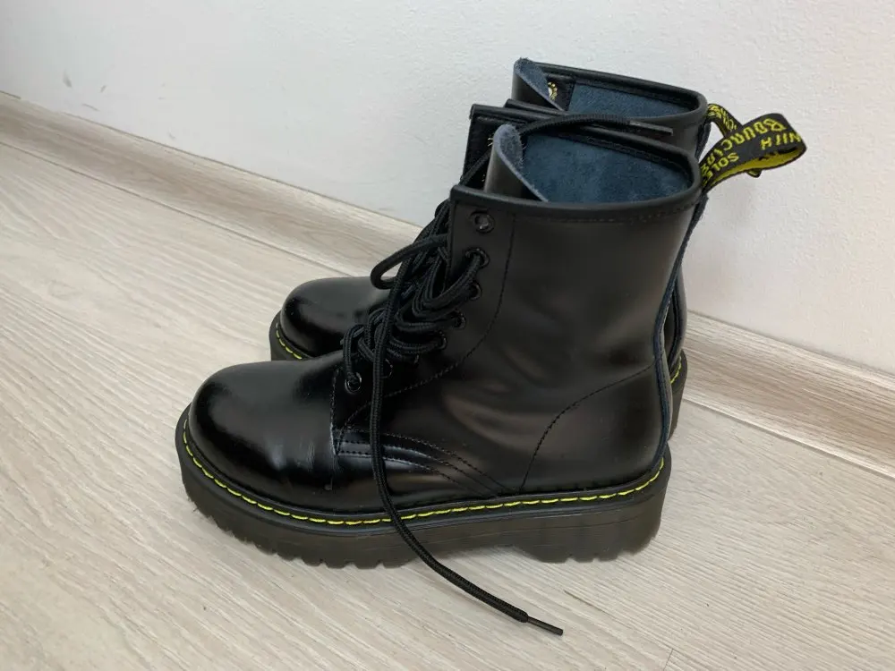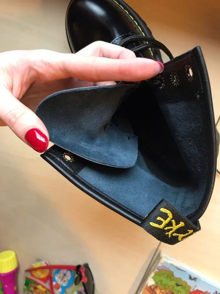 Boots in the style of "Martins 90's" cool! At the foot of 24 cm (RUS. 37) came up perfectly! I took a model with plush inside, I do not really like cold skin inside. Now for socks in Moscow are ideal for jeans, culottes, even light dresses in contrast,-a universal thing! Packing is super reliable, nothing wrinkled, socks as a gift)