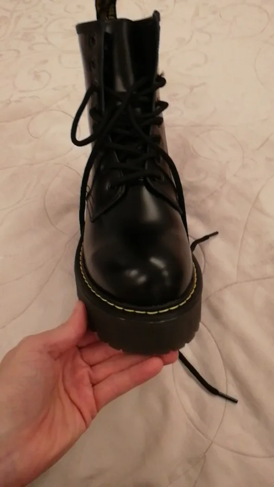 At 37,5-38 took 39 with fur and they just)) the first time I buy Ali shoes so I was afraid not to get with the size. I have a narrow leg, but the shoes are comfortable. In the gift came socks. I'm not sure that this skin and seams are not very neat, glue sticks out in places. To Martins they are far x) but for such a price they are good. I hope the winter will withstand))