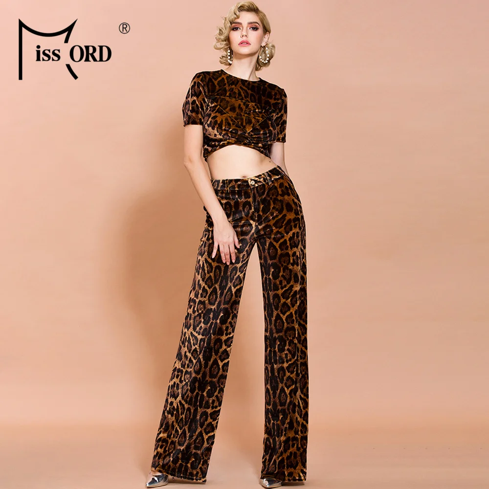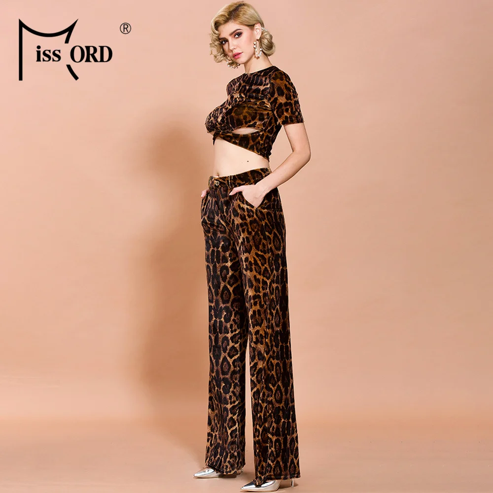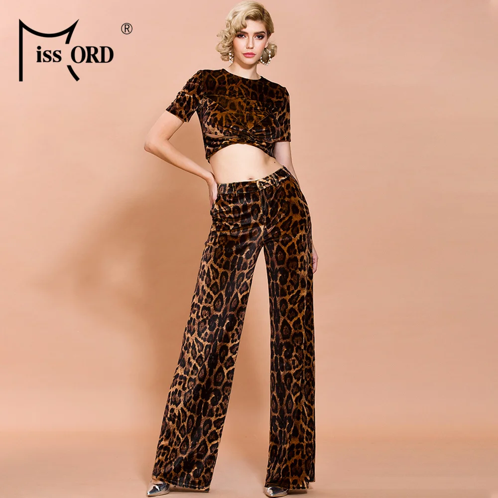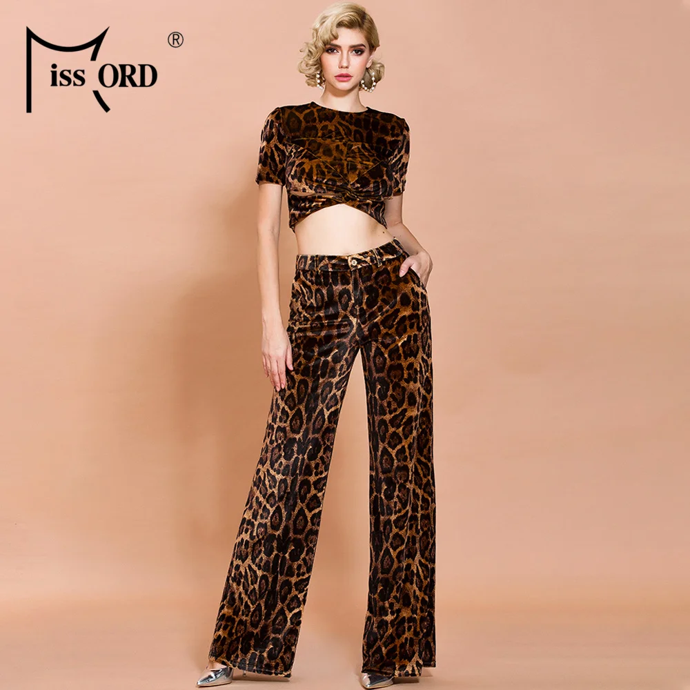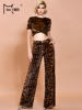 FREE SHIPPING Women Short Top Long Pants Leopard Print Two Pieces Women Set JKP3704