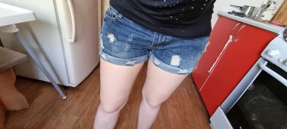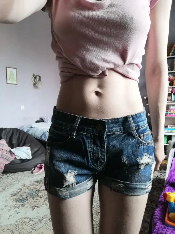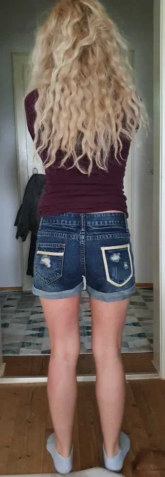 Tight jeans, without elastane. With the size guessed (I wear the top 42-44 Russian, the bottom 46).