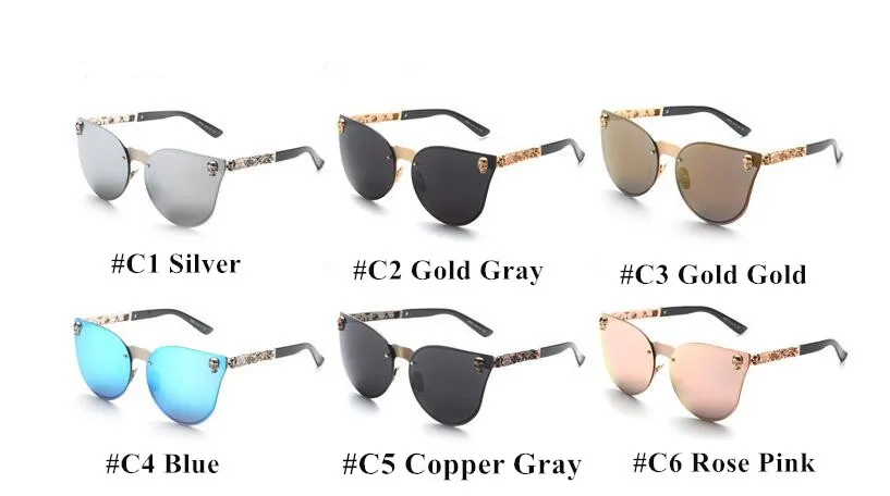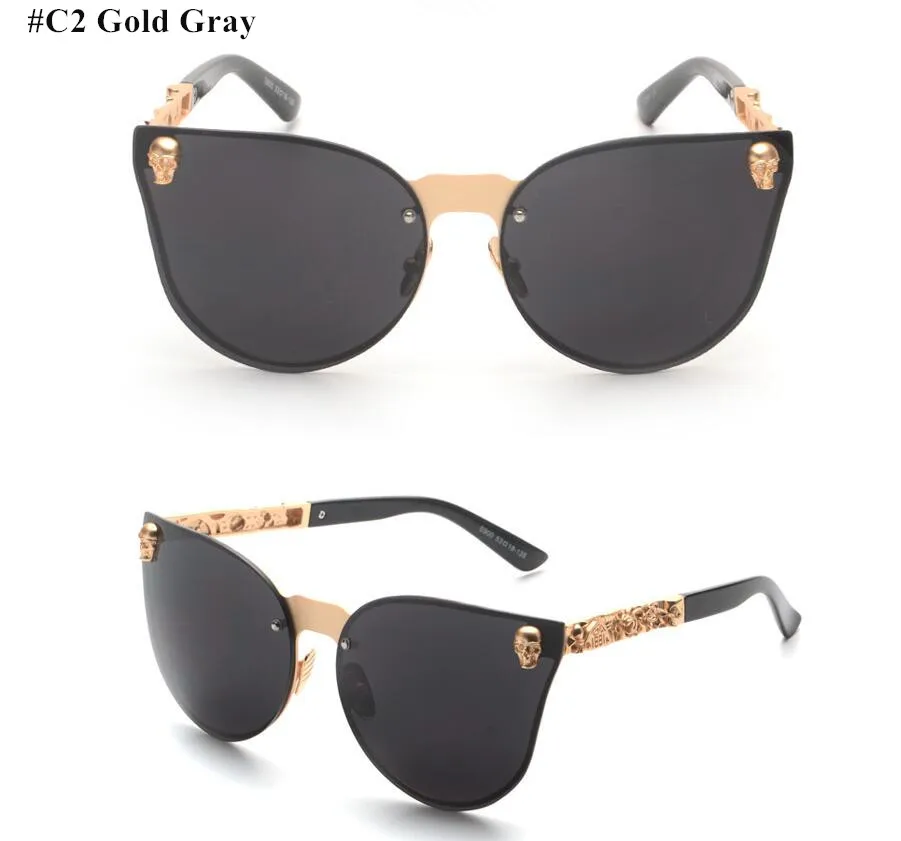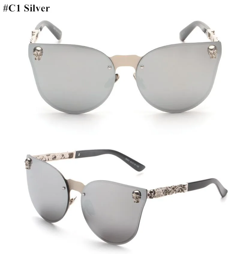 E900-Luxury Skull Sunglasses Brand Design Women Pink Sunglasses Mirro