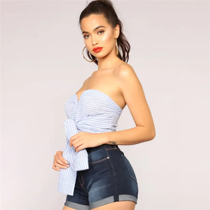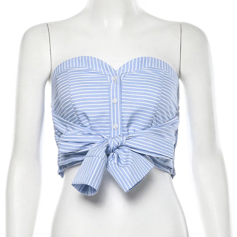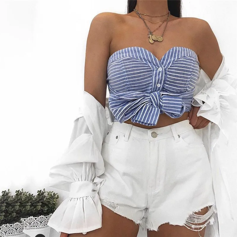 Women Slash Neck Single Breasted With Bow The Front Chest Display Backless High Street Sexy Crop Tops 2019 Autumn