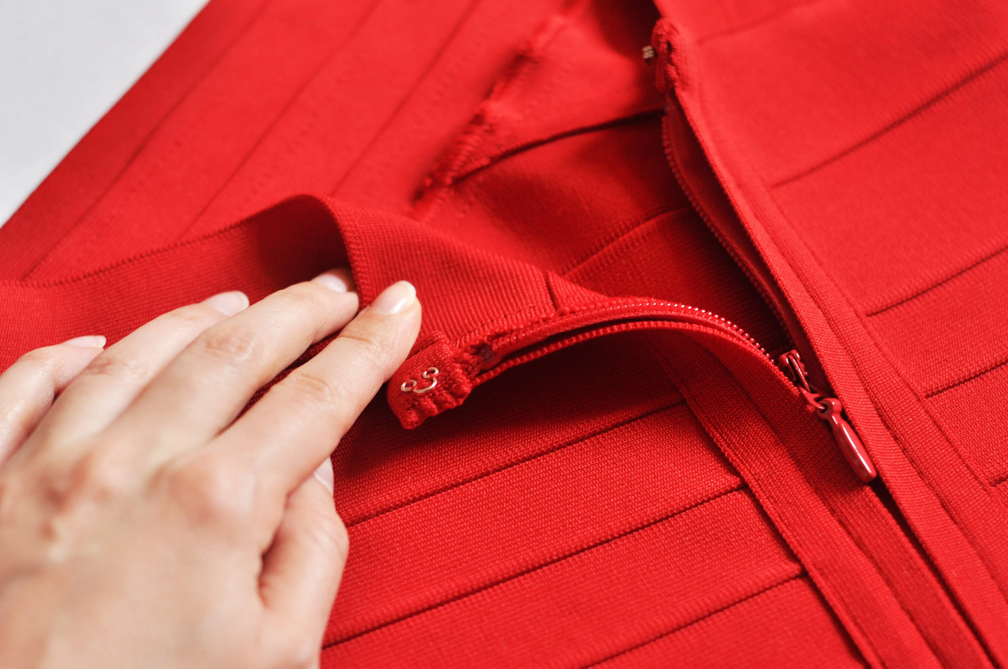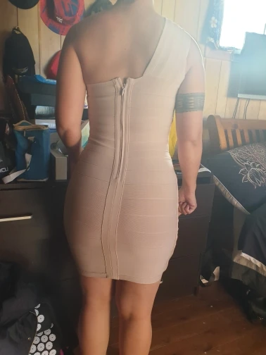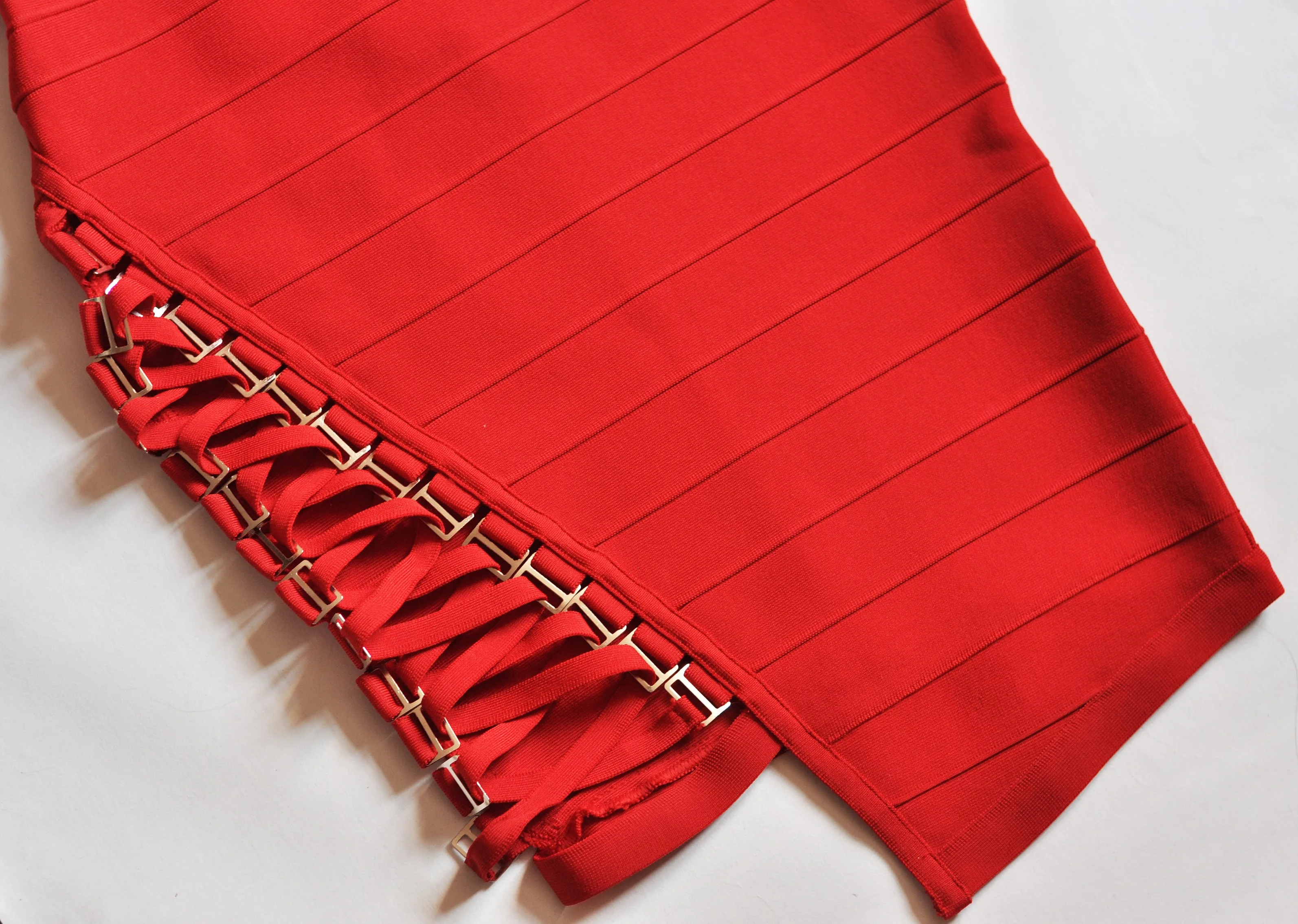 The dress is very high quality, beautiful, very tight bandage, unusually made, on its parameters 92-75-92 ordered the size l, i sat perfectly and nothing presses anywhere, well, in general, i'm happy with my purchase. Delivery is very fast to moscow took about 2 weeks.