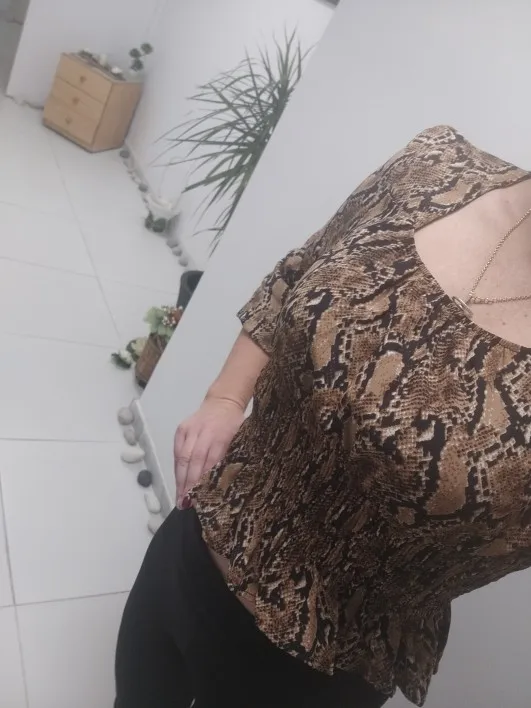 Blouse chic. The fabric is thin, similar to chiffon. At its size, the M-L took l. a little too small, I think that the size would be better. And so everything is super. Thank you store