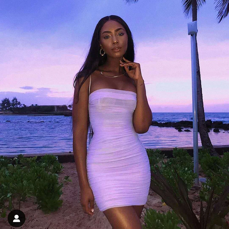 This dress is a STUNNER. Close to the original House of CB Ella Dress. Fits my body amazing and a really good quality item, not see through and doubled line exceptionally well. My height is 5’4/Bust 32”/Waist 25”/Hips 39” all U.S. measurements by the way. Weight is 132 lbs by the way. Also got this dress in pink and it’s just as gorgeous as well!