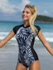 FREE SHIPPING Women Sports Swimwear With Zipper Full Print Patchwork JKP6016