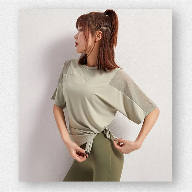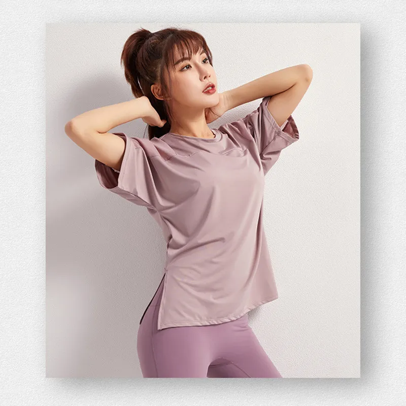 FREE SHIPPING Women Sports T-shirt T Loose Short Sleeve Stitching Quick Drying Breathable JKP7198