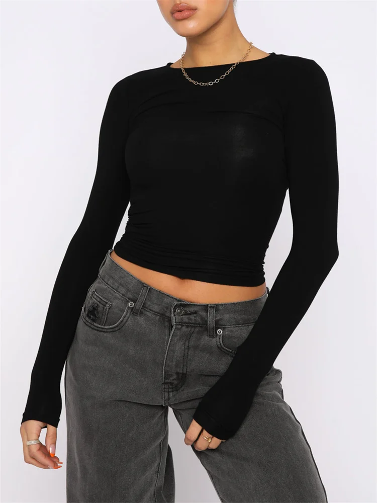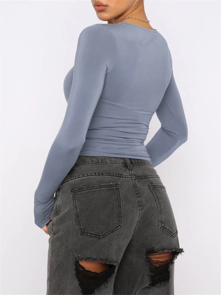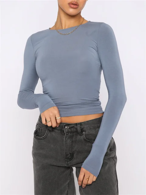 FREE SHIPPING Women Spring Autumn Long Sleeve T-Shirts Tops Solid Slim Fit Pullovers Causal Tees Shirts JKP6077