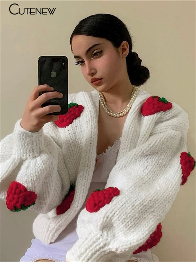 FREE SHIPPING Women Strawberry Sweater Cardigan Kintted Long Sleeve JKP6046