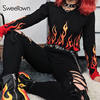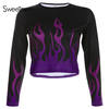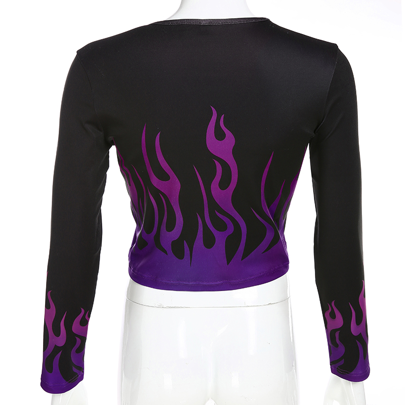 FREE SHIPPING Women Streetwear Flaming Fire Graphic Casual Printed Basic Tshirt O Neck Long Sleeve Crop Top JKP3787