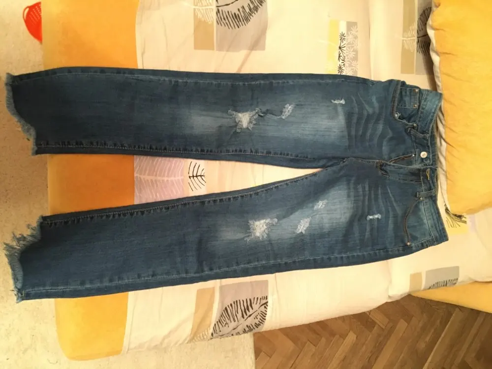 Delivery to St. Petersburg two weeks, track tracked. Fit in size. Jeans tight, stress. In general, exactly as in the photo. There was a smell when unpacking. Thank you! I will still order