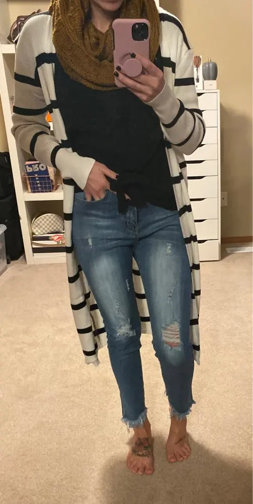 You guys these jeans are GREAT quality!!!! I am 5’9” and these go to my ankles just like the photo. I’m usually a 14 in jeans and the XL fit perfect!! One of the best pairs of jeans I own now. They shipped SUPER fast and were so affordable. I can’t wait to order more!