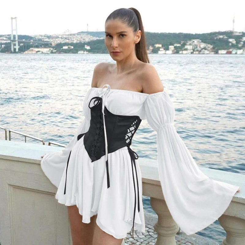 FREE SHIPPING Women Summer Beach Short Dress With Corset JKP4841