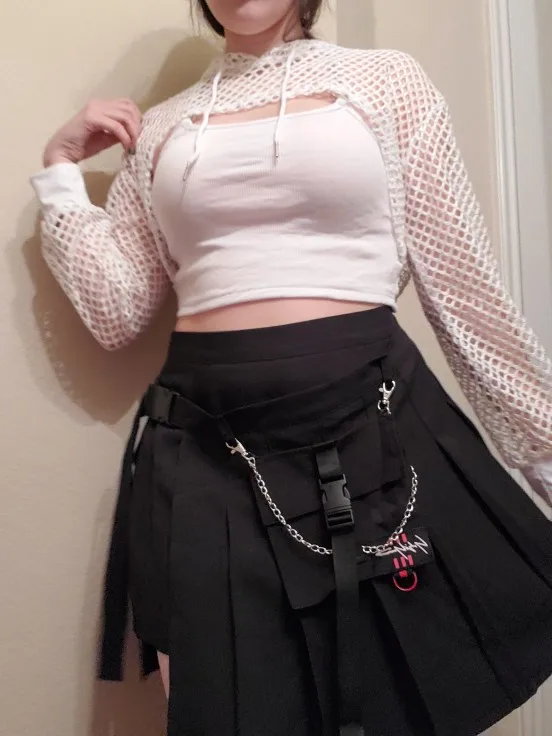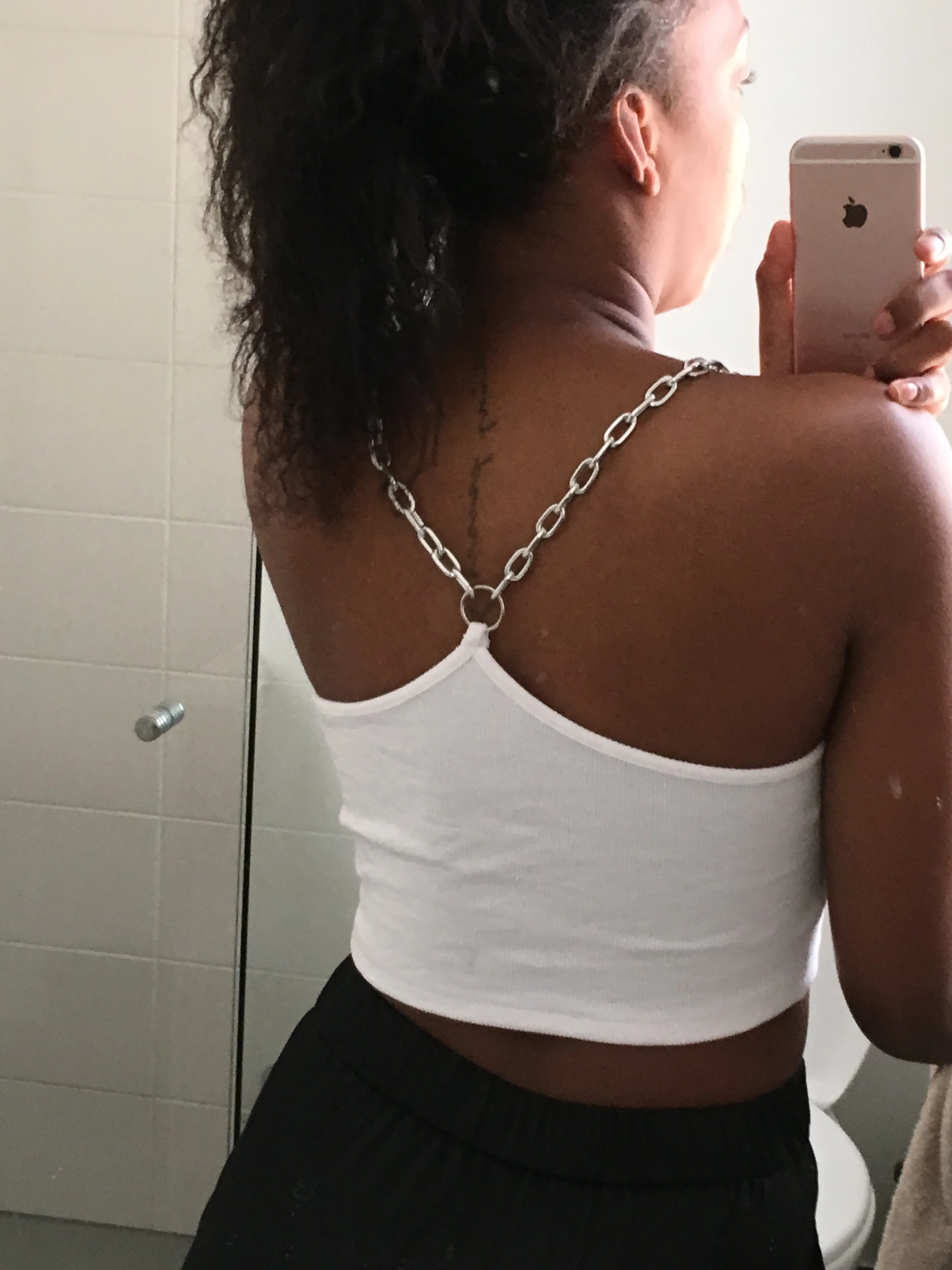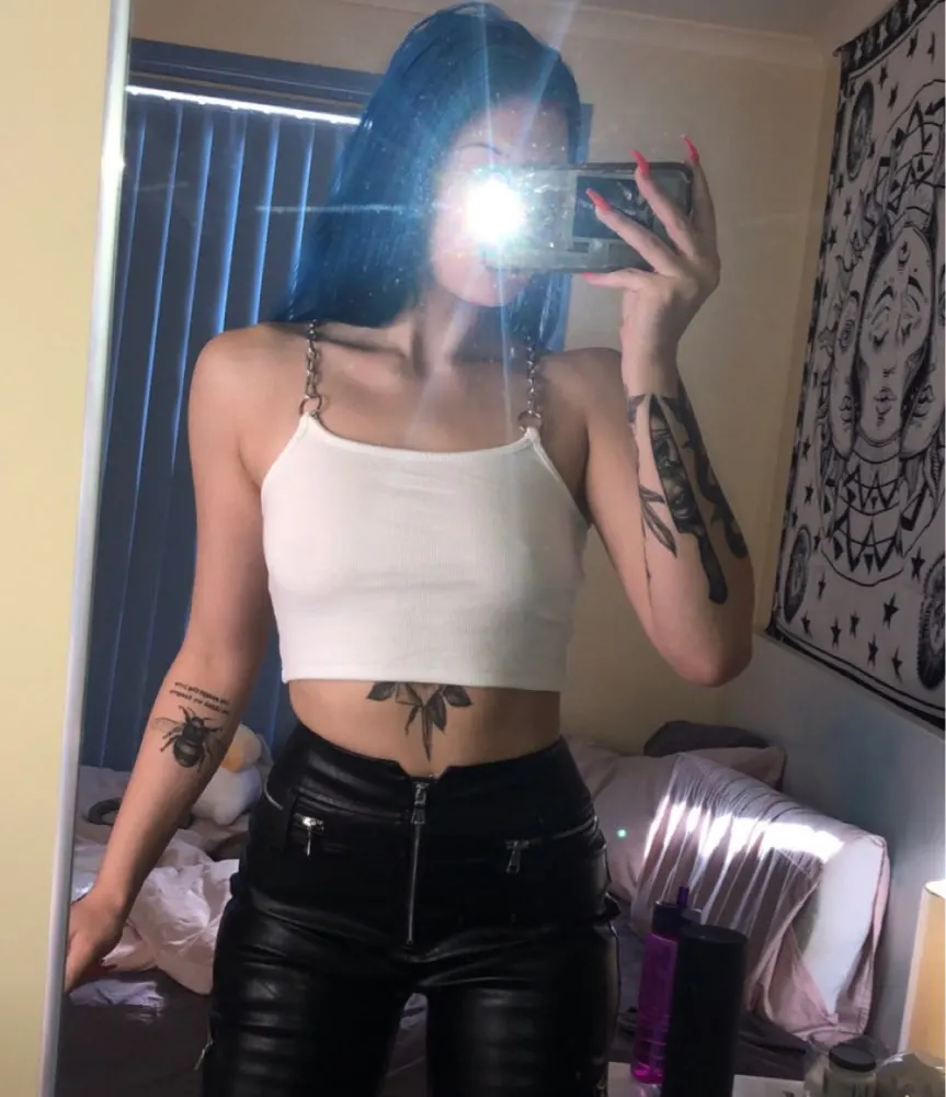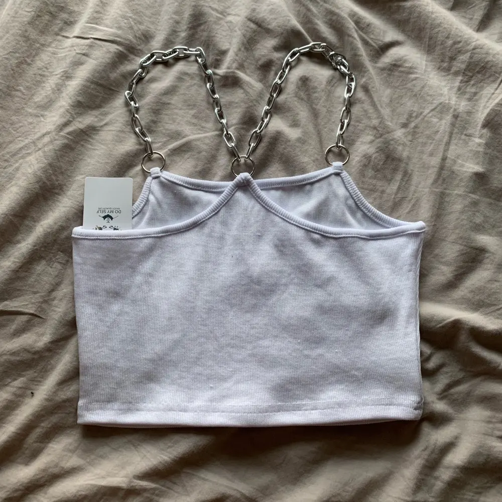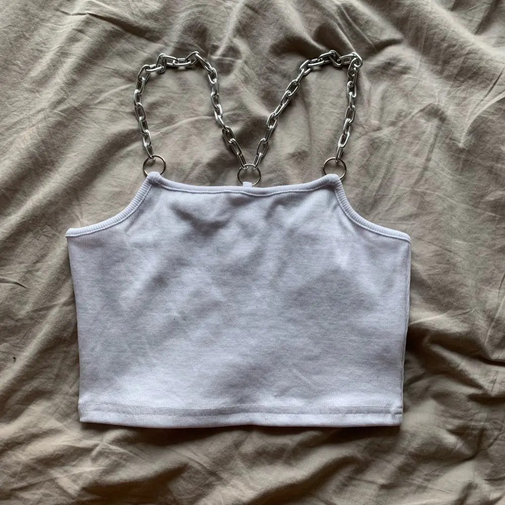 LOVE THIS!! Fits true to size so order your normal size, I got in a S and it fits PERFECTLY! The crop lengh is perfect, the back design is amazing and he chains are lightweight but not super cheap feeling and the material is really nice and not too see through considering its white. Took 22 days to reach Australia.