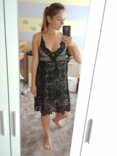 The dress is very cute, and very, very low-cut on the front. Shipping: I had ordered free with epacket fee to receive the faster, despite what the store shipped with registered mail (small disappointment was made notice to the service center. Might as well not choose freight more expensive if the seller send out head its). The seller had offered ricaricarmi on PayPal amount of $2 to apologize… I left all as gift as Ciononostante the parcel will arrived in 12 days about and dress was in perfect condition. Not clear and perfect fit.
