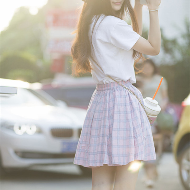 FREE SHIPPING Women Summer Japan Style Plaid Skirts JKP1211
