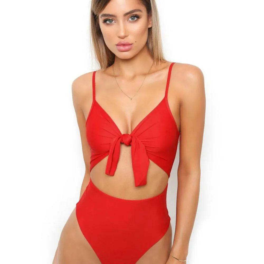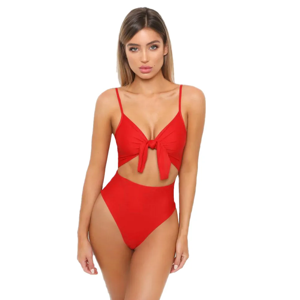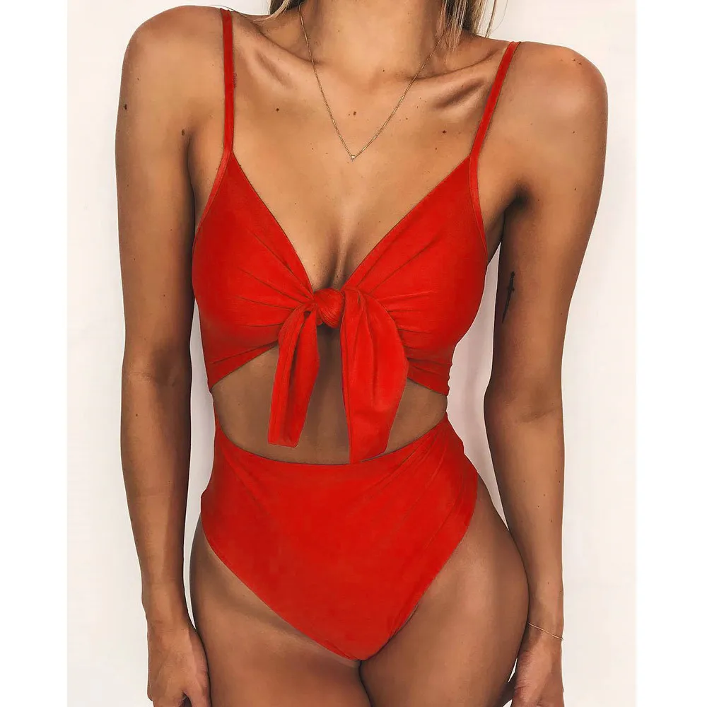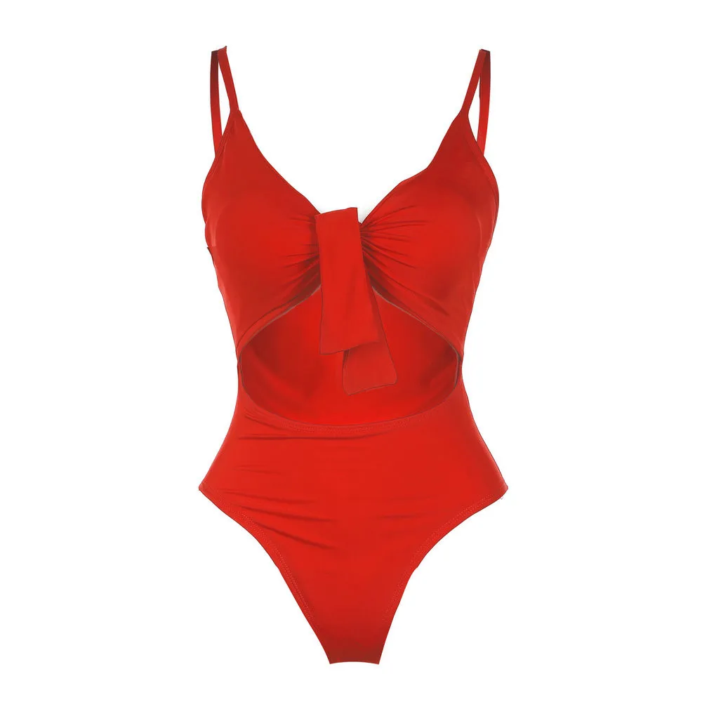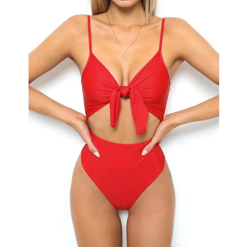 Women’s Piece Of Swimsuit Solid Bowknot Bikini Swimwear Beachwear Bathing Suit