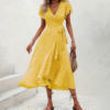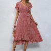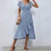 FREE SHIPPING Women Summer Ruffle Wrap Midi Dress Floral Printed JKP7392