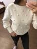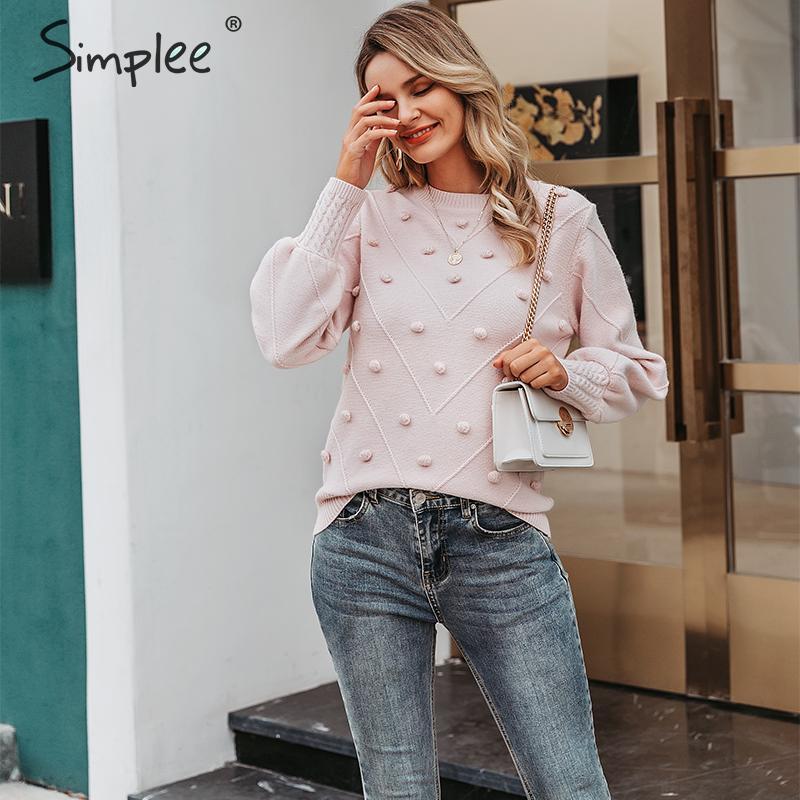 FREE SHIPPING Women Sweater Elegant Fur Pompon Autumn Winter Lantern Sleeve Knitted Sweater JKP3818