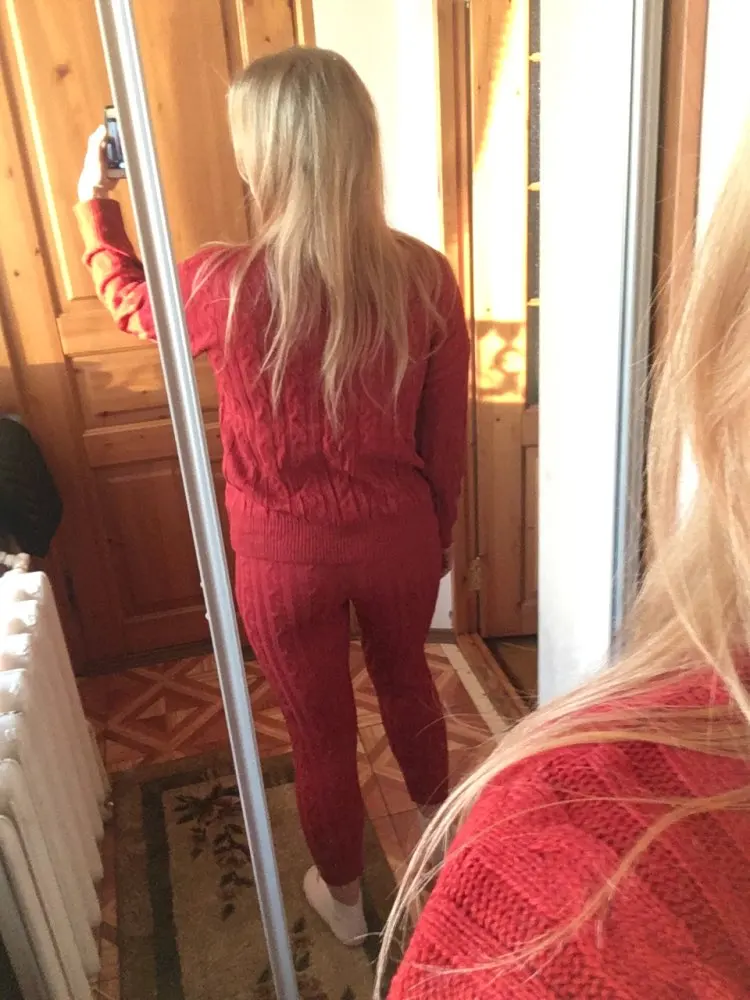 He's here! Hurray! Sdek parcel, took in the point of issue! Very afraid for the size! My parameters are 60 kg and height 174! In general, cool! Pleasantly surprised! Everything came up! Yes pants breeches and pofig, pigtail is tied beautifully and the color is gentle! The sweater is not as long as on the models, but maybe they are a meter in jump growth. In general, satisfied! Come!