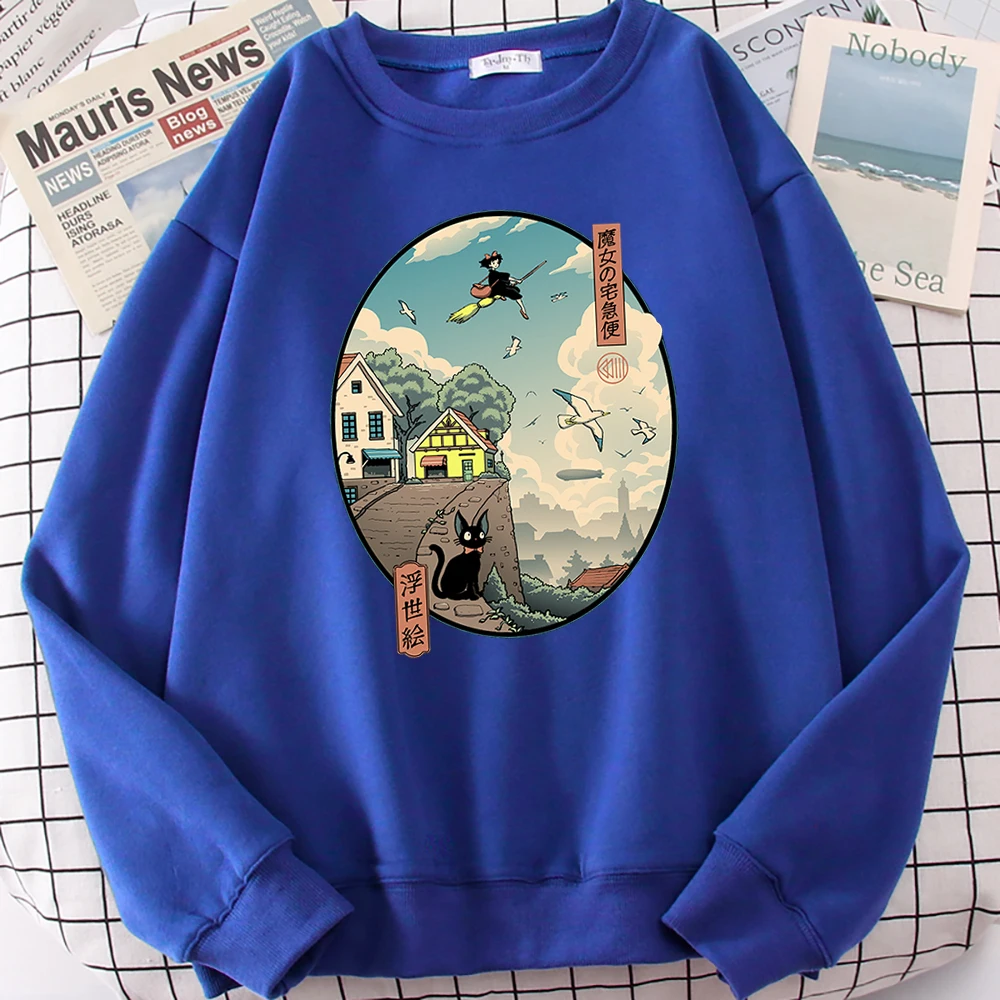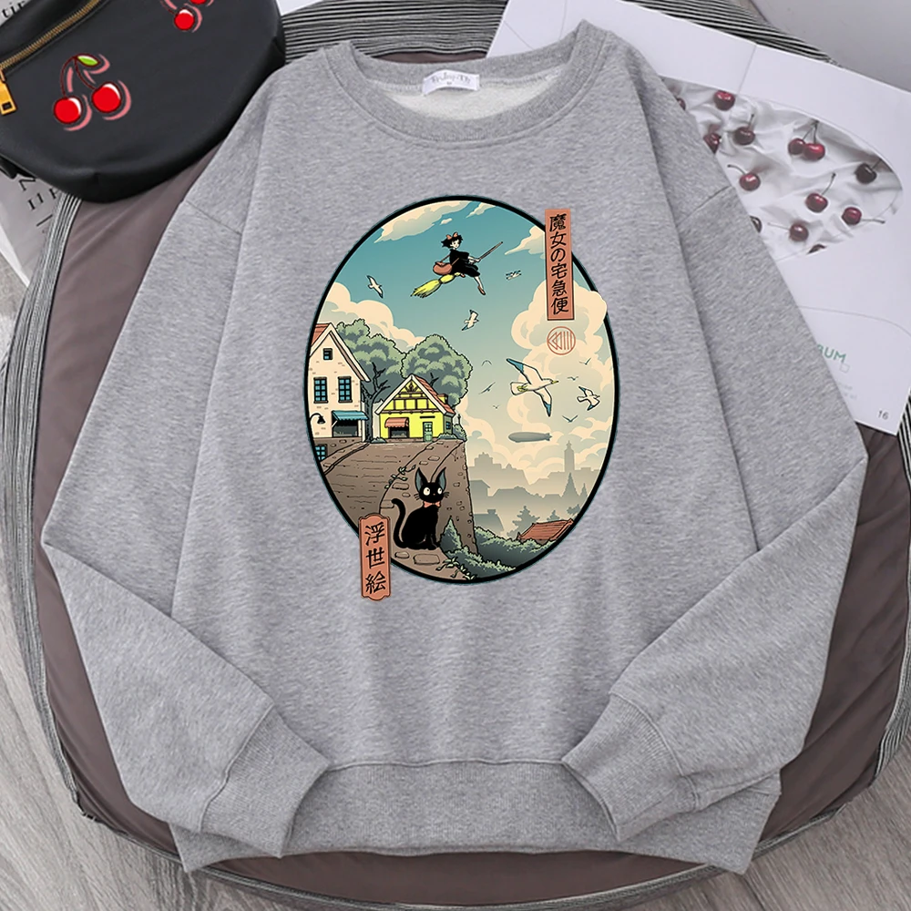 FREE SHIPPING Women Sweatshirt Kikis Delivery Service Print Japan Cartoon JKP5870