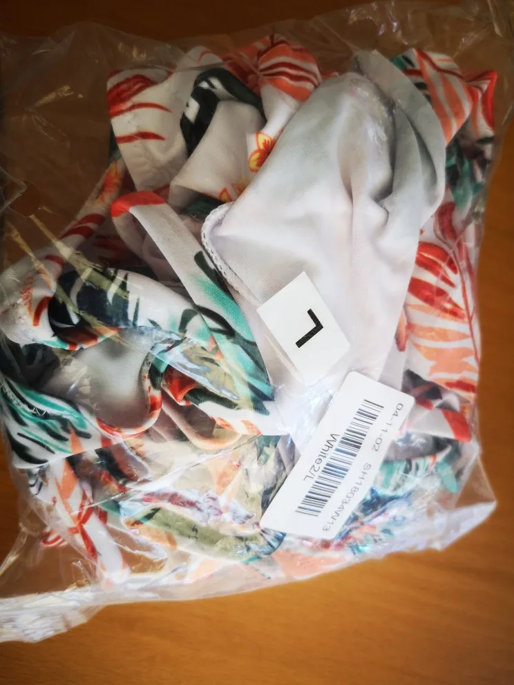 A beautiful swimsuit, very satisfied, the seams are even, the threads do not stick out. On the parameters 87/60/104 ordered the size m, sat perfectly, due to the strings you can adjust the size for the chest, so that will fit well and for girls with a bigger/smaller breast, the main thing is to look at the size of the hips, i think that the size m is suitable for girls with hips is not wider than 105 cm t. to more will be ugly to stick in the ass, And the chest can safely be adjusted and tightened as you like. The fabric is soft and pleasant to the body, the pattern is bright, i advise. came for 10 days