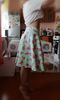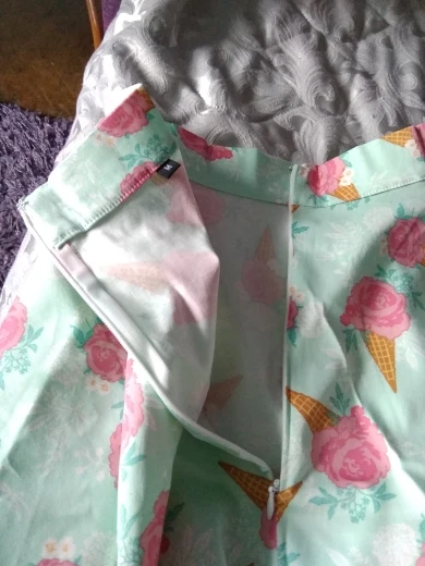 Very cute skirt. Good quality of the print on it. It fits okay on waist about 70cm, hips about 98cm, height 178cm. Although it doesn't sit right on the waist but a bit lower (size M), knee length. Could take S to wear it higher up. Received two measuring tapes as a gift. It was shipped very quickly and I received it about 2 weeks after ordering. Thanks to the store!