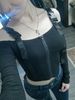 Super cute top. Zipper does not zip all the way up but due to the elastic lining the top. Still very fashion forward. I loved it.