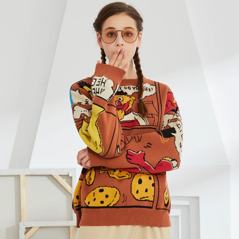 FREE SHIPPING Women Thick Sweater Funny Cartoon Letter Printed JKP4767
