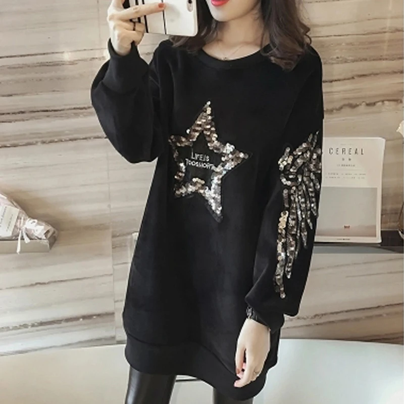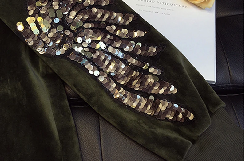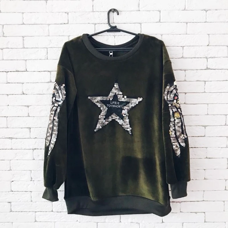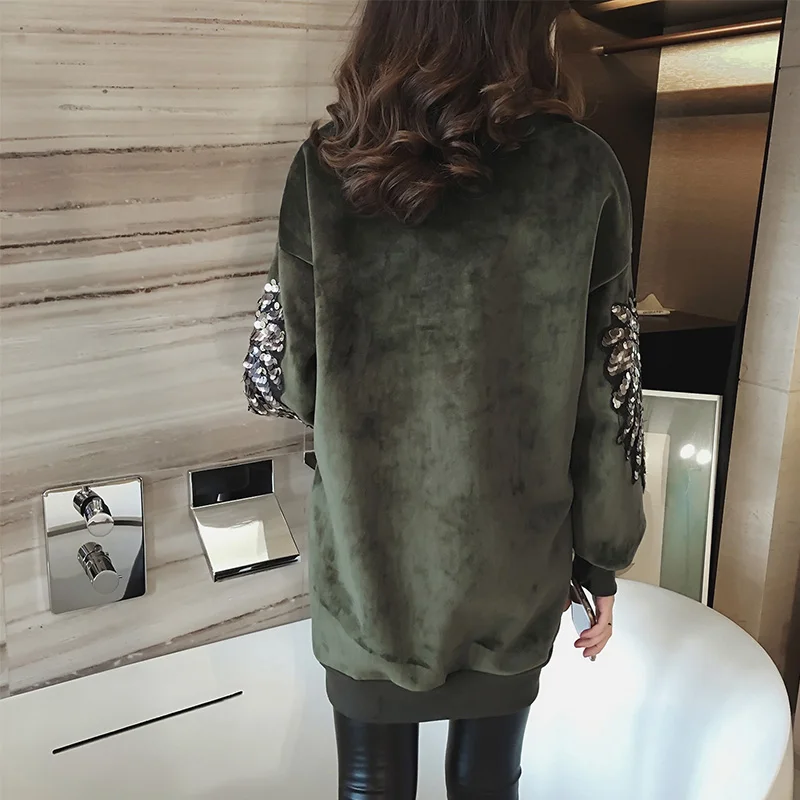 FREE SHIPPING Women Thicken Velvet Sweatshirts Sequin Fleeces Pullovers JKP3686